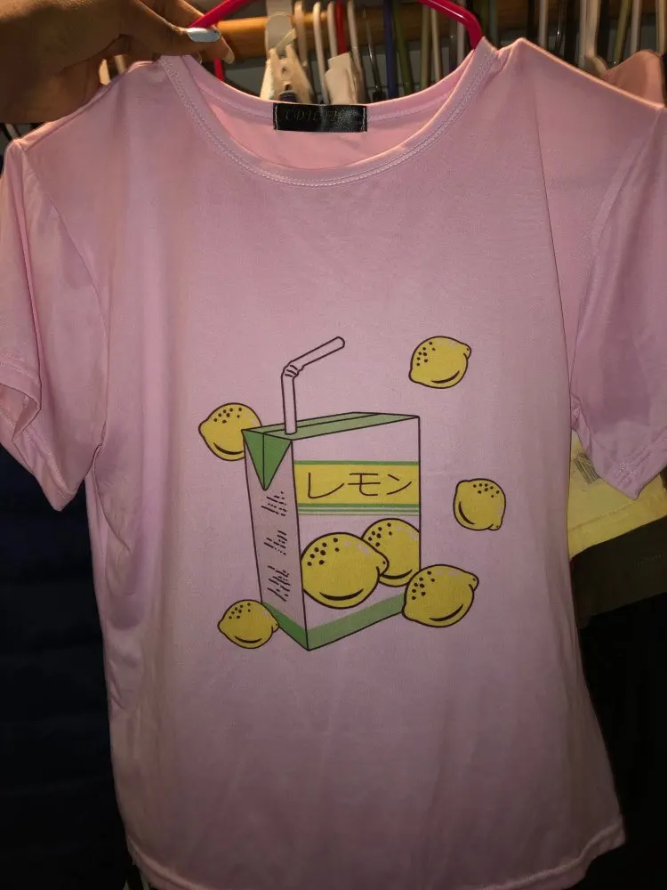 The shirt is cute, and made from stretchy material. But get a size or two up if you want it to be loose and oversized