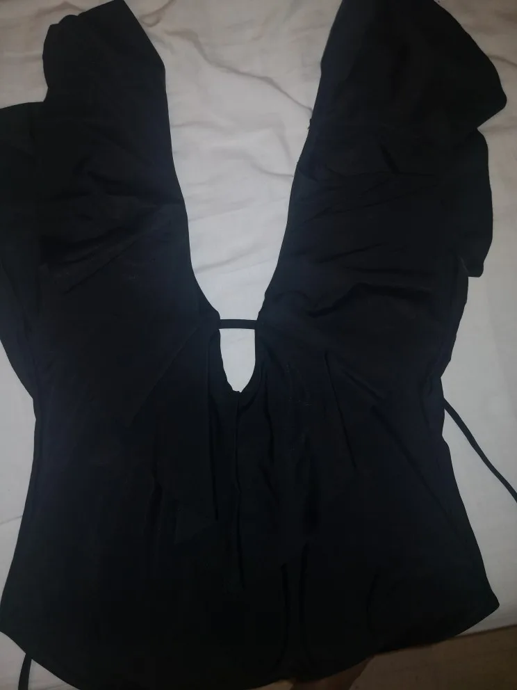 Chic. Well, let's go, the seams are even, the threads do not stick out. Well stretches. At 48 Russian XL sat down without problems. Behind you can pull the strings of the bodice
