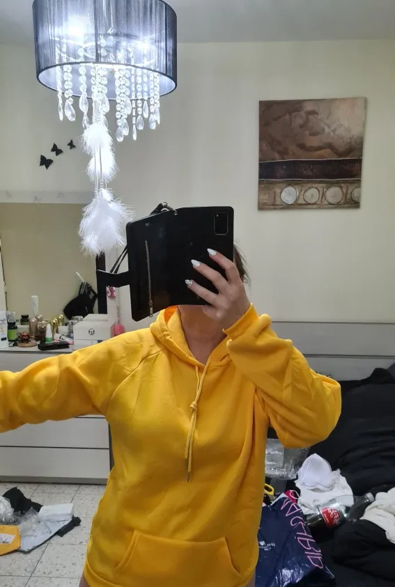 The hoodie is exactly like the picture and description. I’m very satisfied. It fits perfectly! I choose size M and I’m 167height. If you want a little bit more loose choose a bigger size.
