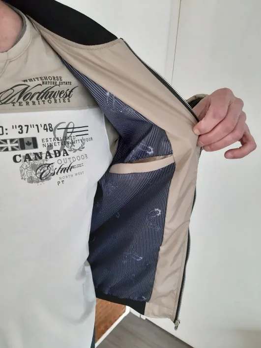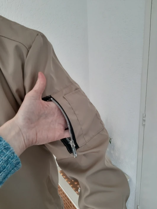 This jacket is very nice. Good quality and lovely colour. It has a little pocket on the sleeve and a pocket inside the jacket. Delivery was 12 days to The Netherlands. I would buy again from this store. Thank you sea-malls.