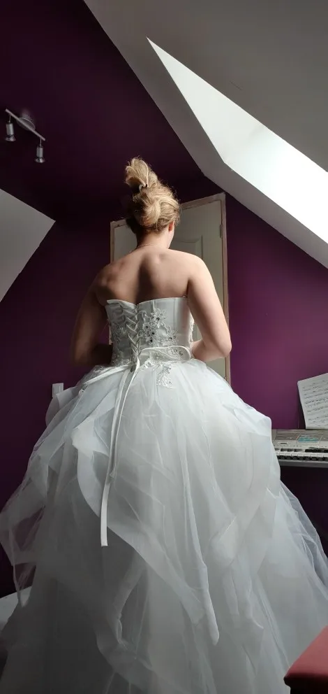 1m67 60kg bust 88 size 78 hips 95. Size ok do not need a skirt several thickness under the dress, comfortable, you need a person for the laces behind and remove it. Fast delivery. Fortunately everything is OK