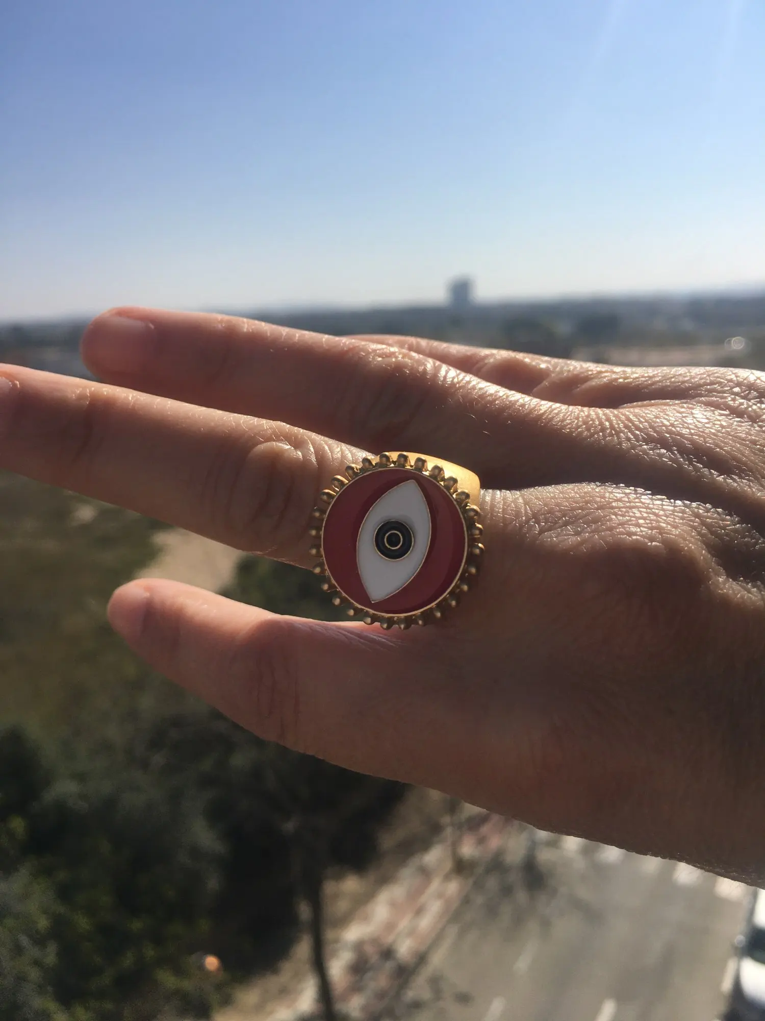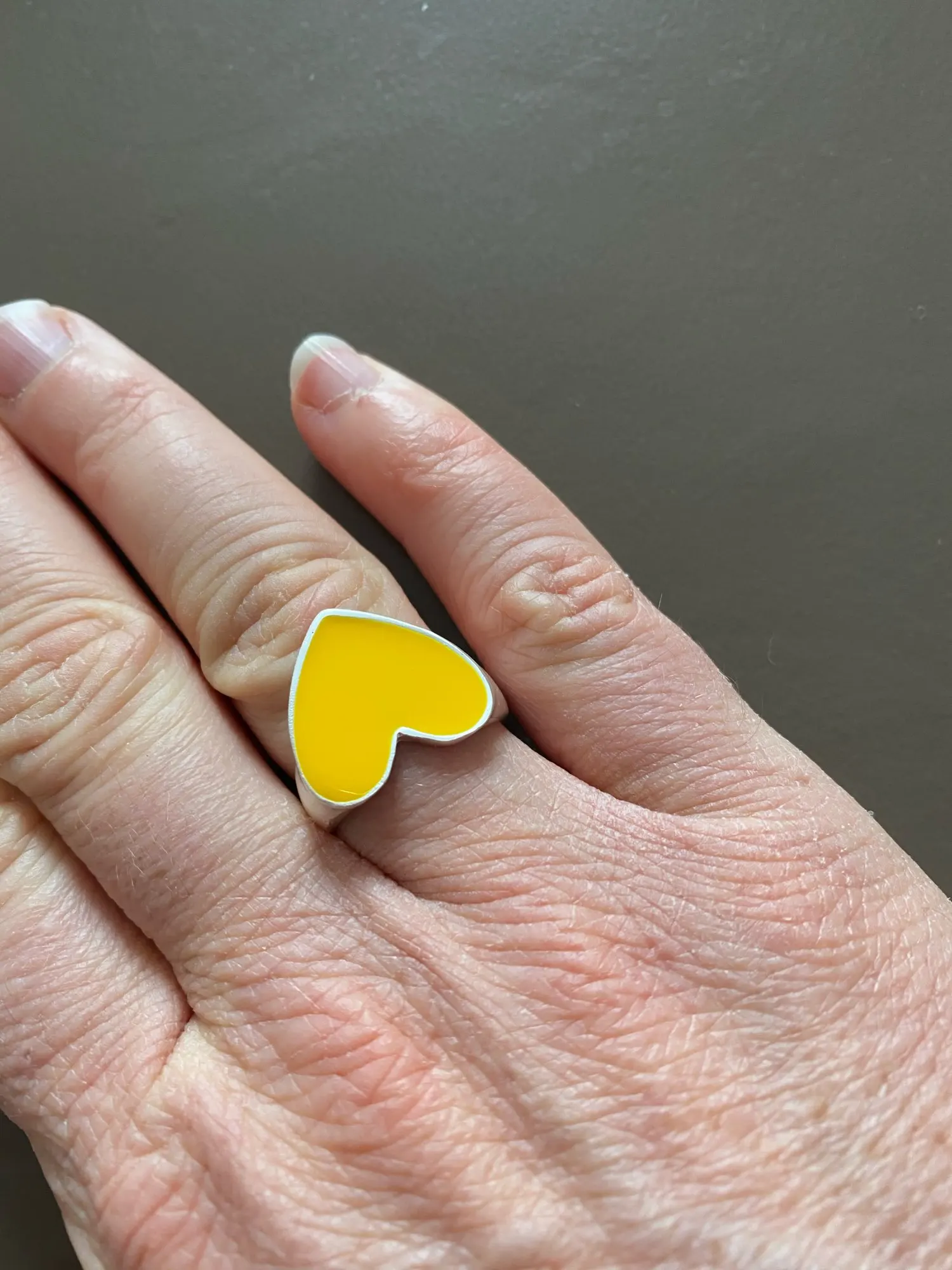 Very cute ring. Note that this is a big size ring (8). But it looks nice on the finger. My item has a crooked enamel on the side but it still looks great.