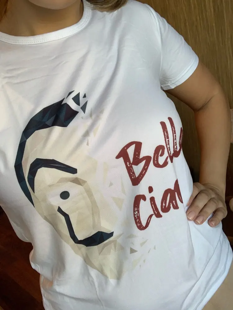 T-shirt made of polyester, but very soft and pleasant to the body. Came quickly, the printing quality is good