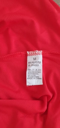 Very bright colour, dress is made of polyester 95% and spandex 5%