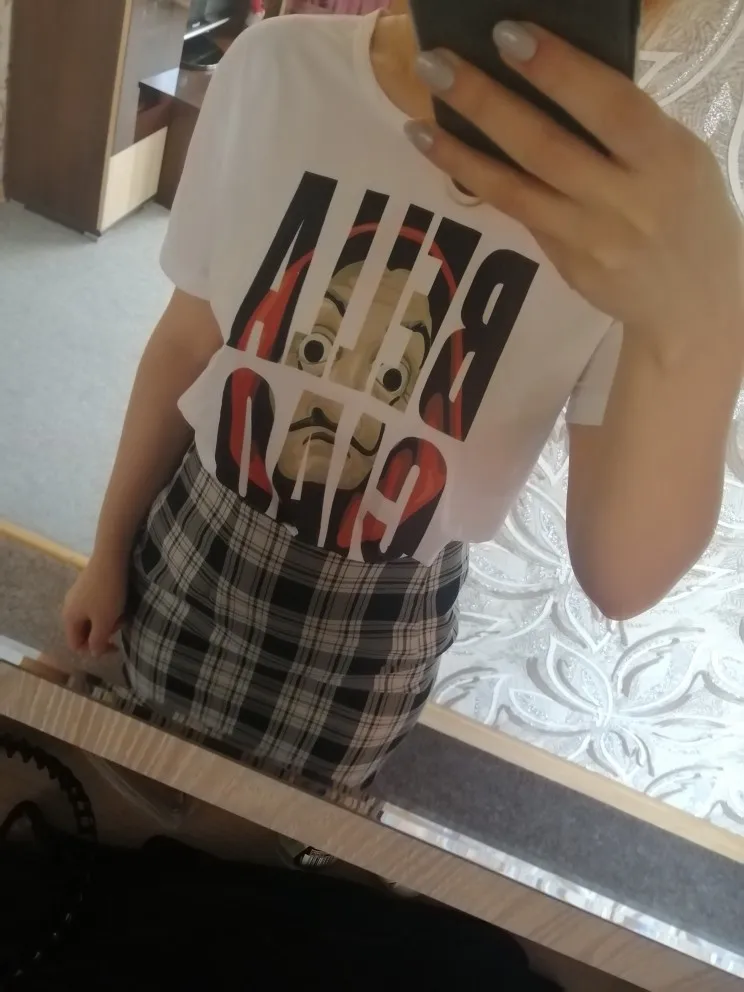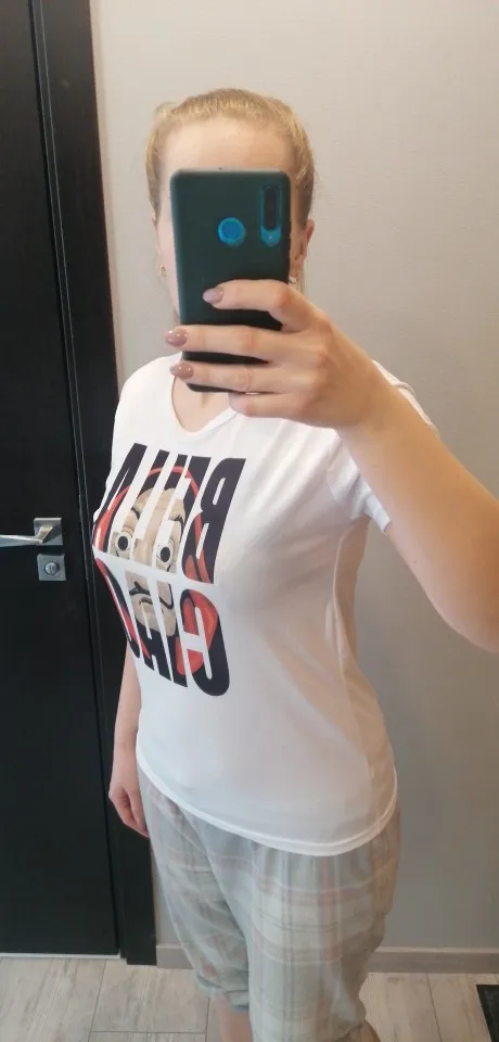 T-shirt is very cool, took S) everything is clear in size, and the material is not like an ordinary T-shirt and type Cotton, very pleasant to the body)