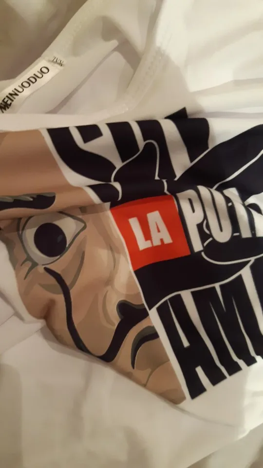 T-shirt is cool. Not cotton. Pleasant to the touch. Soft to the body. Near the quality of the photo is vague. It looks great in the distance.