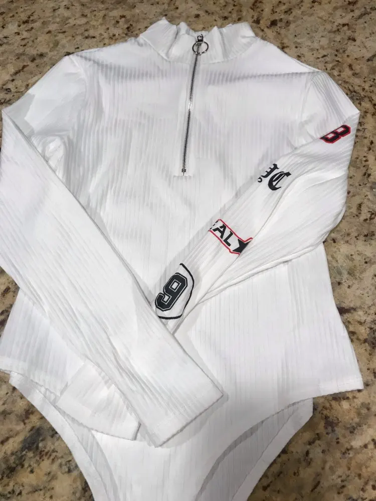It looks just like the picture. Good Quality material shipping was great. I went one size higher and it fits perfect