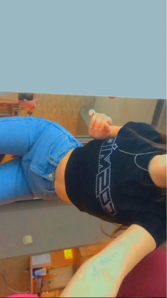 super cute stretchy cropped tshirt, all the rhinestones are in place and they make the shirt so cute. i got a small and it fits snug but i have a small chest so it’s perfect on me!