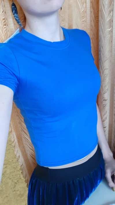 On the parameters 95-72-95 perfectly sat the size of XL. On height 160 length to navel, excellent under the bottom with a high waist. The fabric is soft, pleasant to the body, not cotton (or not pure cotton), the fabric is stretch, it stretches well (tag with composition in Chinese). T-shirt of white color, medium density, shines not much, under beige underwear is good. It doesn't feel bad. The seams are even, but the threads cut a lot. Came in a bag with a tag, the smell of a new thing. Delivery less than a month. I liked it very much, it looks great, I ordered it in another color.