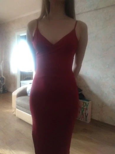 Excellent dress, nice fabric, well sewn. At a height of 175 cm, 44-46 the size of the clothes and chest 75c took the size S, perfectly sits. Delivery about a month.