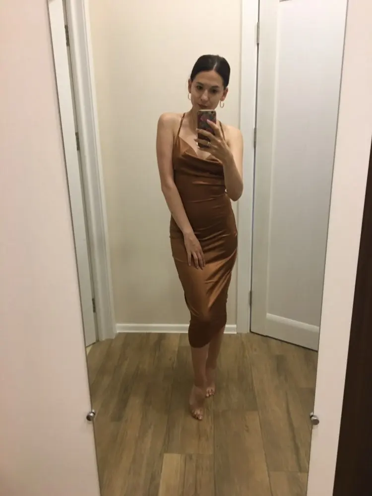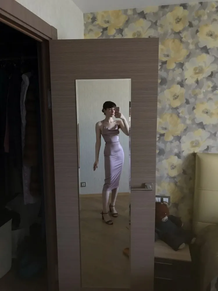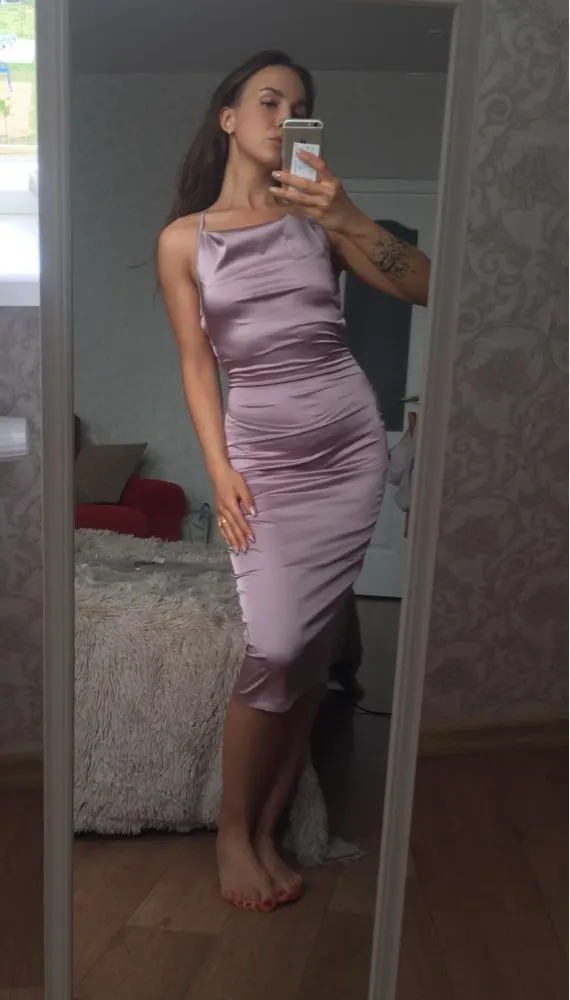 All as in the description, very tight the figure, such as I wear, I ordered it, everything came up. The fabric stretches a little, it's good, but does not breathe at all, synthetics, from the minuses more seams, they are quite poor quality. But in general, the dress is super! Especially for such a price!)
