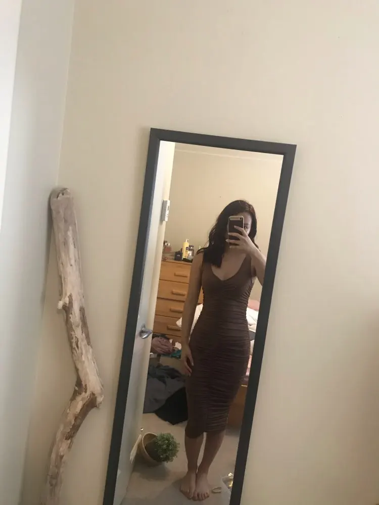 I AM IN LOVE!!!! I am a UK size 10 and ordered size M, it’s perfectly fitted but not tight (how I wanted it). Item arrived to UK within 13 days of ordering. The dress is amazing quality, beautiful colour, fits perfectly, so happy and definitely going to order the brown!!! Thank you! My favourite SM purchase!!