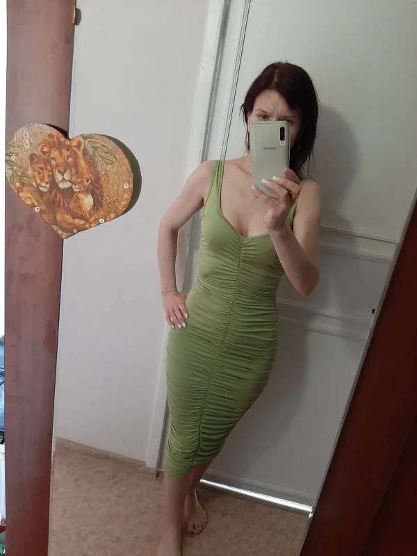 The dress corresponds to the description on the site. The fabric is pleasant, it stretches well. Sewn neatly. Colors, as on the site. On the parameters 82-66-96 size s came up perfectly, length-15 cm below the knee.