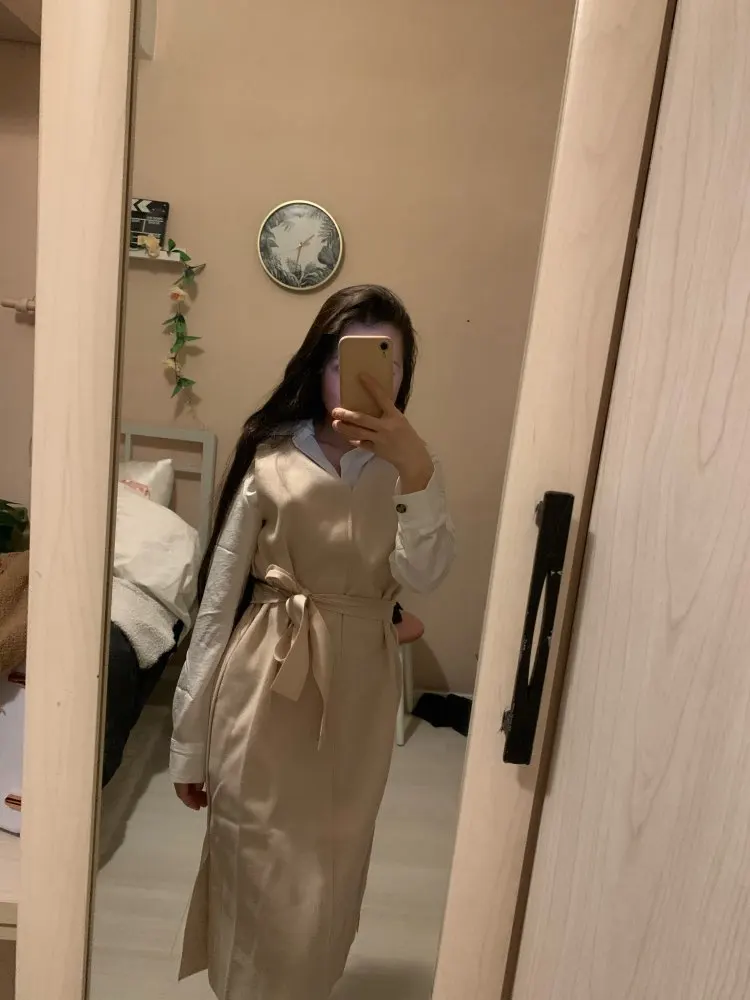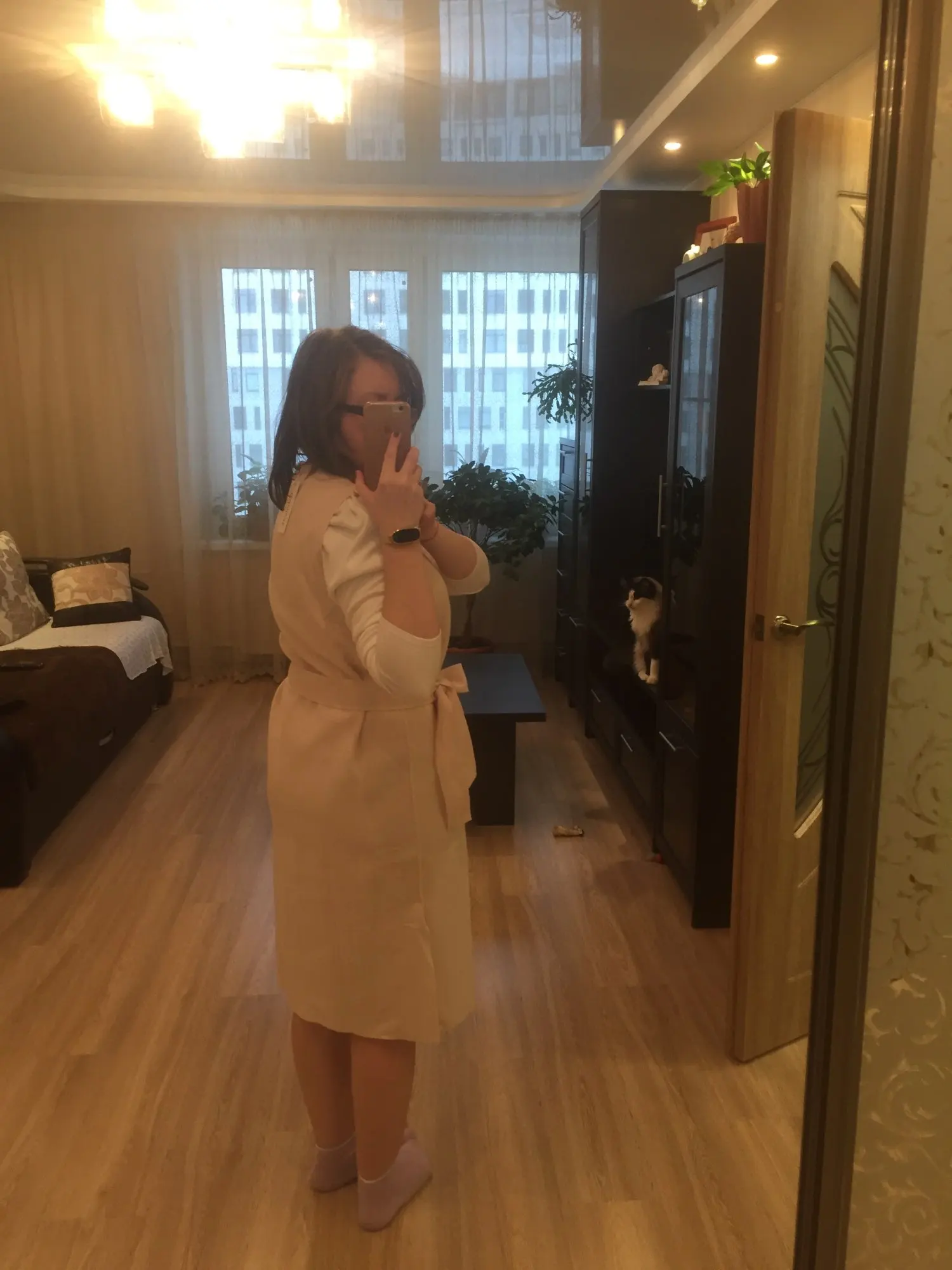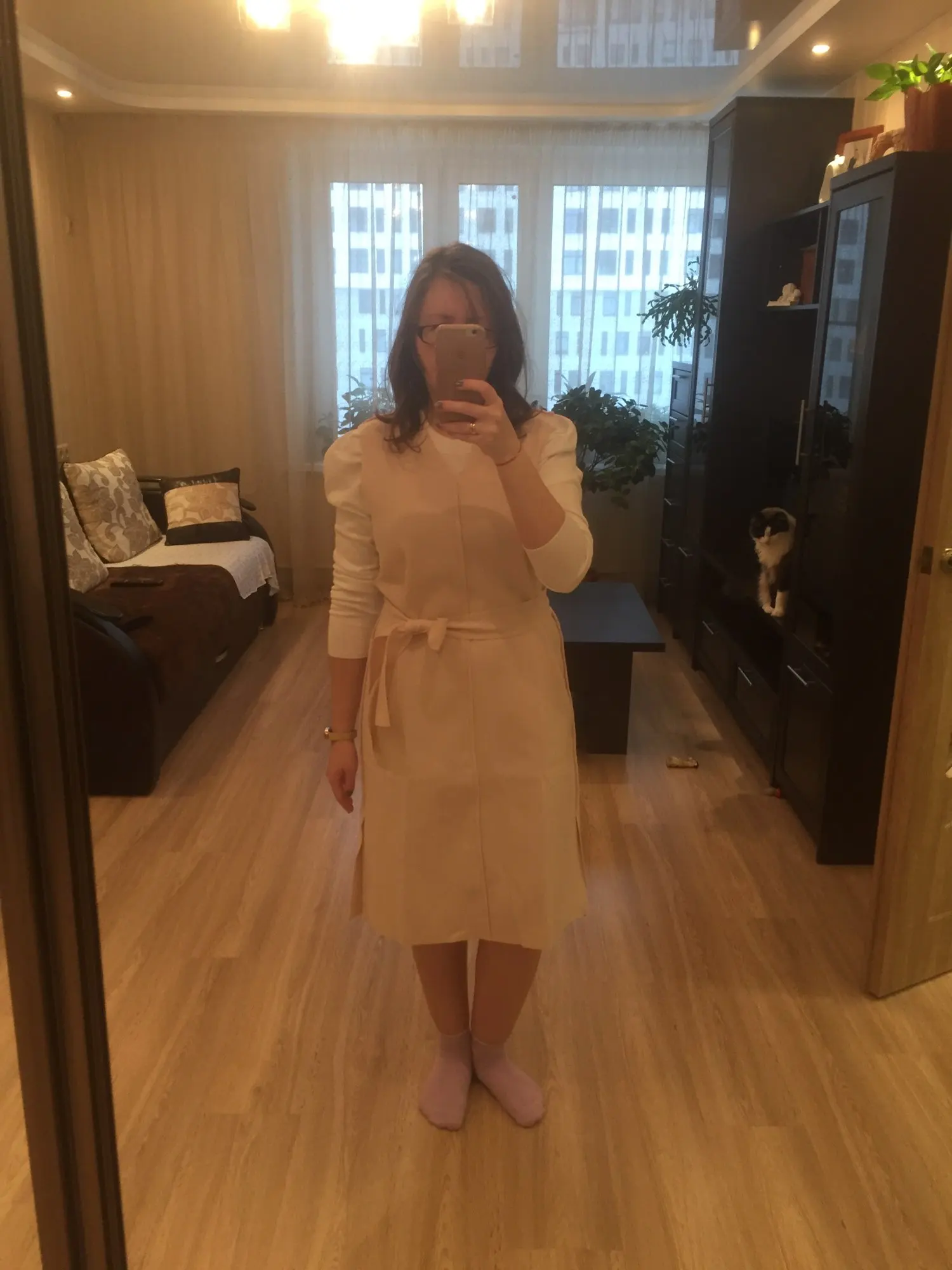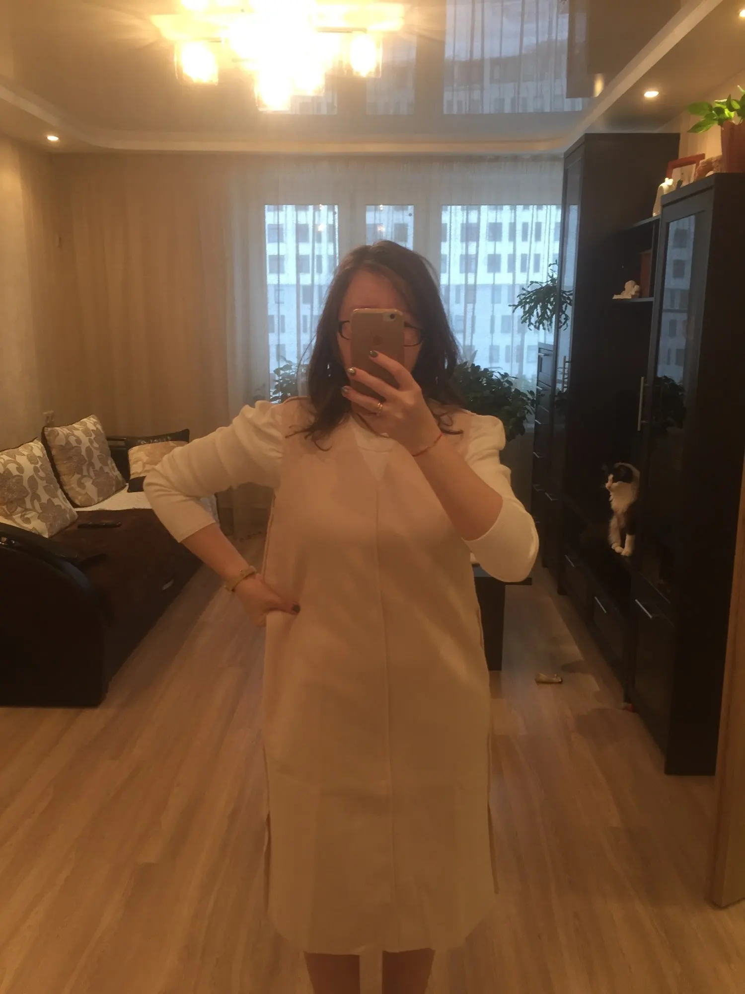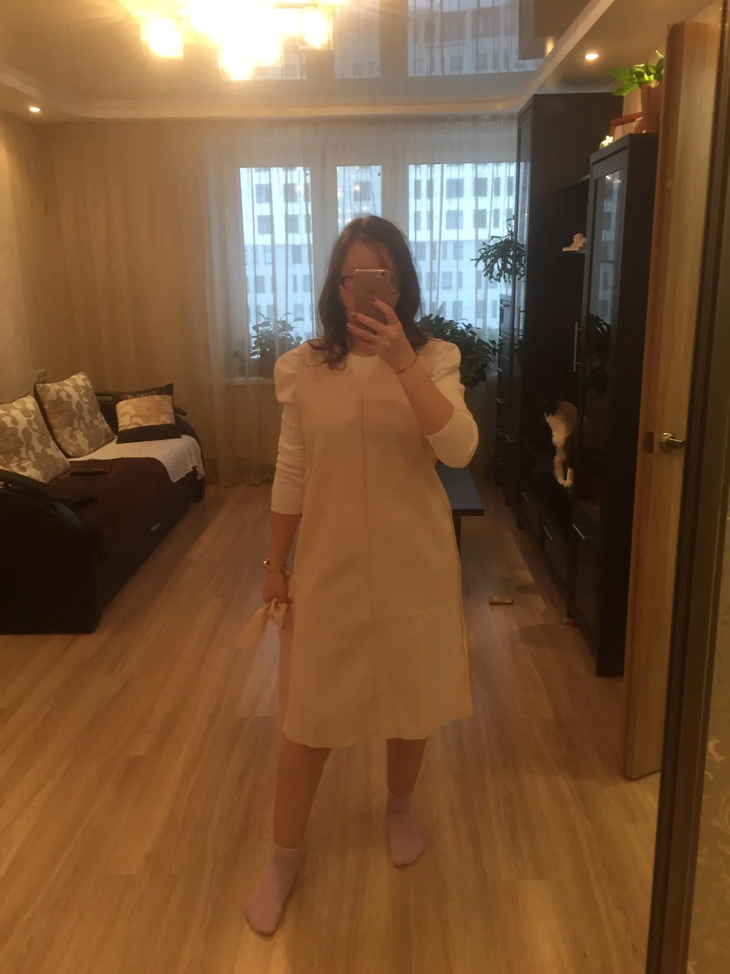 Chic dress! Quality at the highest level! All seams are even, odorless. Very warm, but in this color a little shines through. On my parameters 89-75-97 size M sat perfectly. Looks good with and without a belt. Very universal, it goes well with classic things-it turns out office onions. It is also easy to create a more informal image, combining, for example, this dress with a T-shirt, rough shoes and biker. So buy without hesitation and experiment with images!