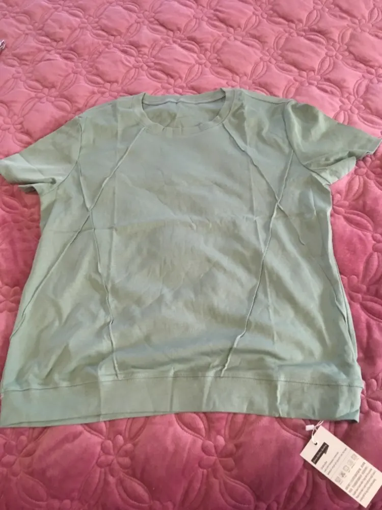 Excellent quality for this price, size L for height 175 cm short, will go with jeans with a high waist, shoulders on the Russian L, does not roll down unequivocally