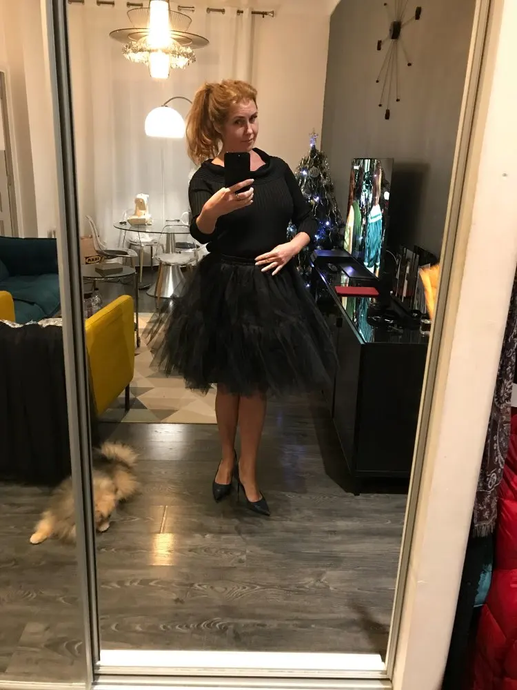 The skirt is just super, very lush!!! if you iron it turns out even lush, more magnificent than in the photo of the store. Sewn neatly, consists of 4 layers of tulle and podyupnik. Underarm and belt of dense satin. Everything is just super, but ironing for a long time))). Shipping was fast, track tracked. I recommend the product and the seller.