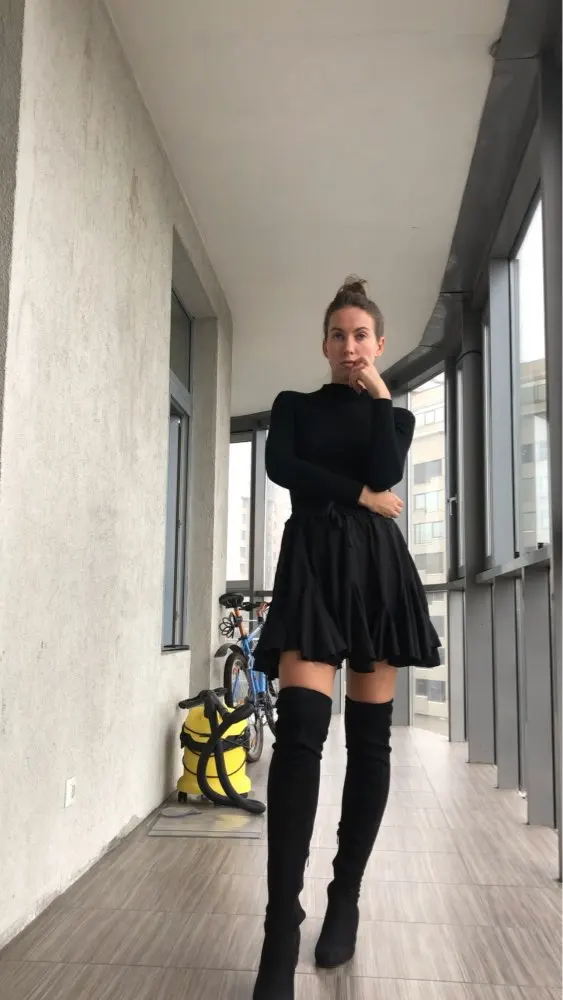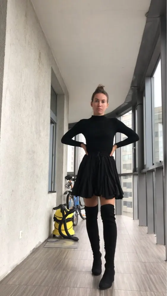 Very cool skirt! Size l at waist 64 and hips 93 is excellent, the height of 173 cm length is also good. Bottom shorts, so you can quietly spin)) the main thing is to steam! i'll take the rest of the colors)