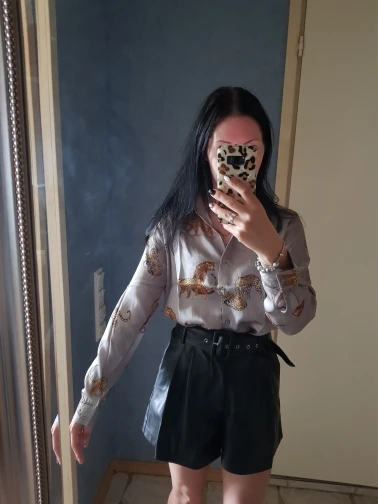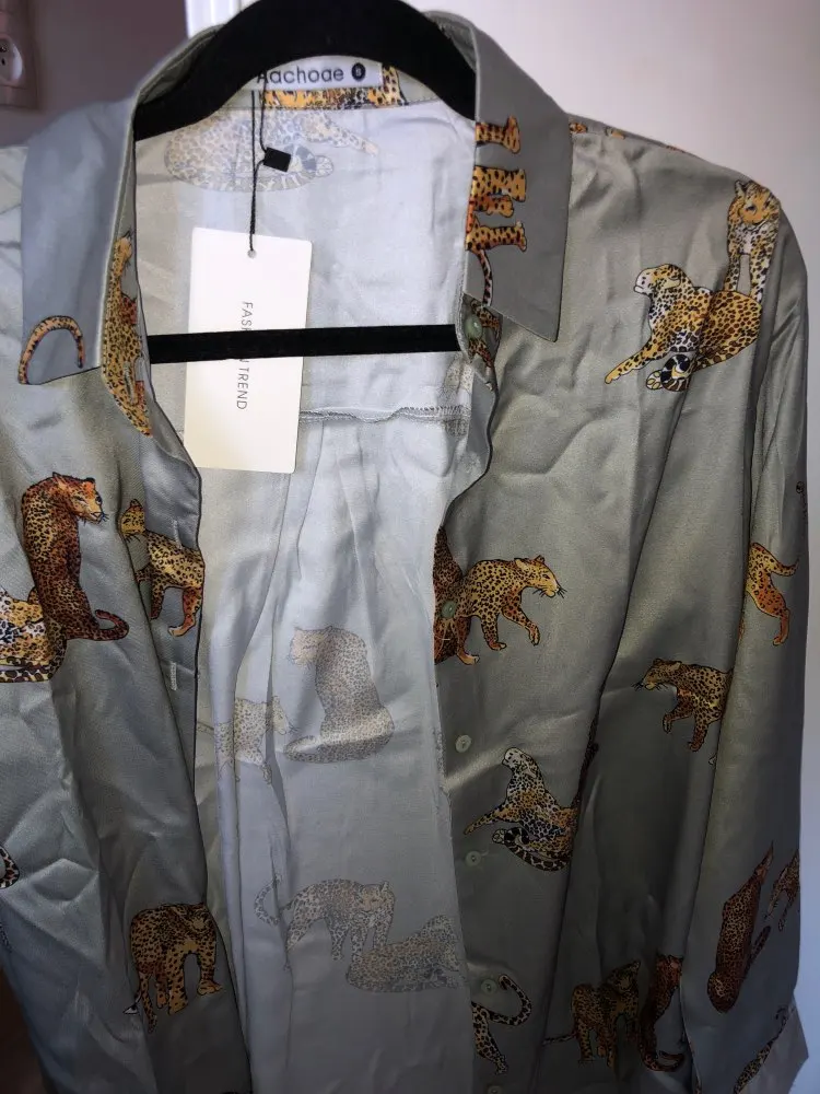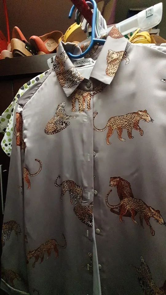 Women's Stylish Jungle Theme Turn Down Collar Long Sleeve Plus Size Casual Fashion Shirt, Tops, Blouse