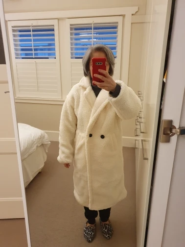 Women's Stylish White Teddy Coat Great for Autumn and Winter Thick and Large Cashmere Coat