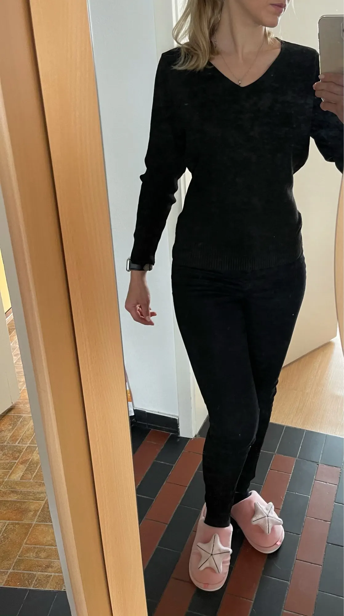 Delivery fast, 2 weeks. I took S on the parameters 85-60-90, height 158. Nice sweater. Thank you