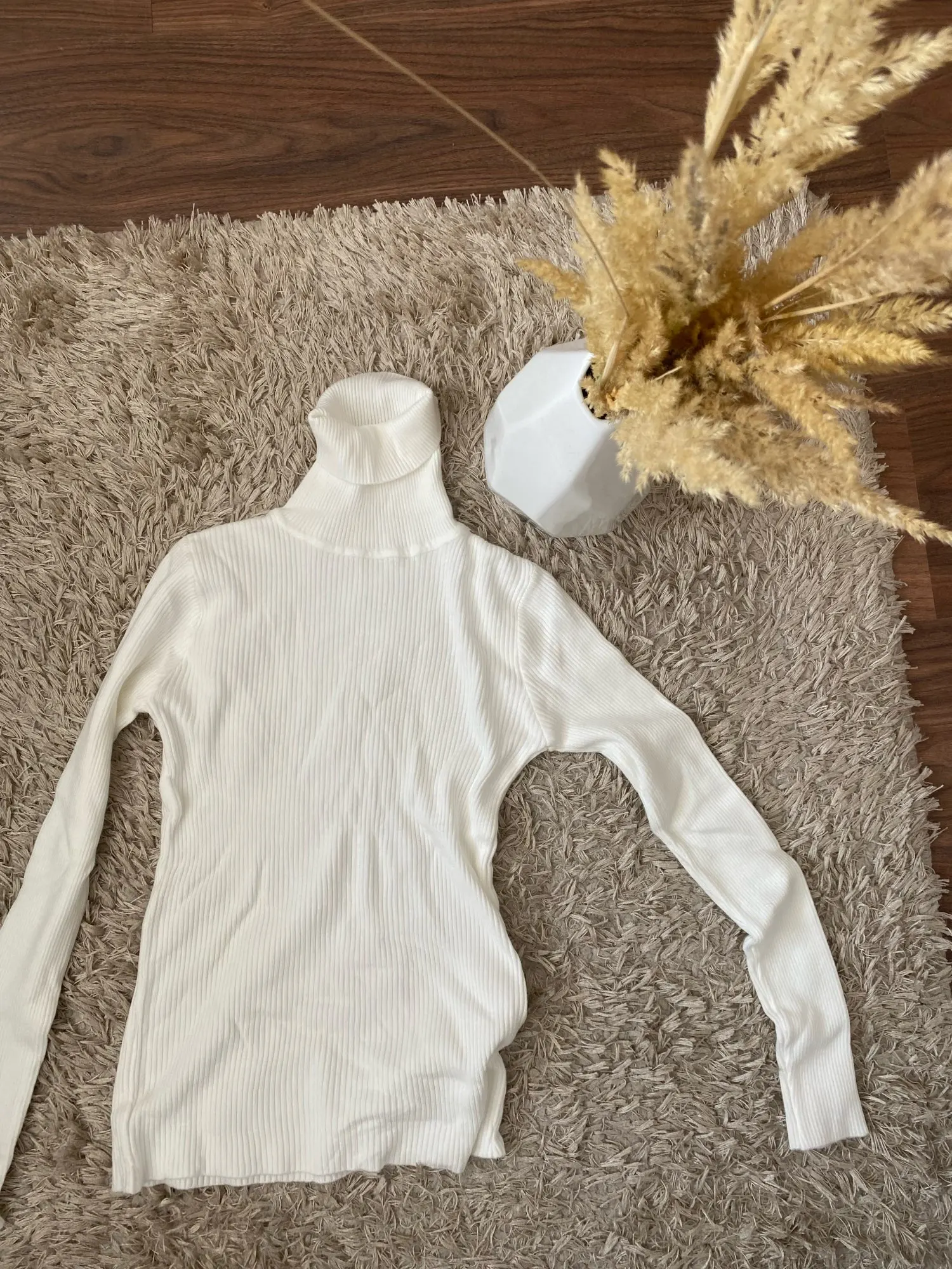 This ribbed polo-neck jumper comes in a luxe supersoft fabrication. This jumper looks great with classic jeans. Acrylic 62%; Polyamide 28%;. Machine wash. because the sweater can stretch so Manual measurement may has 2-3 cm difference.