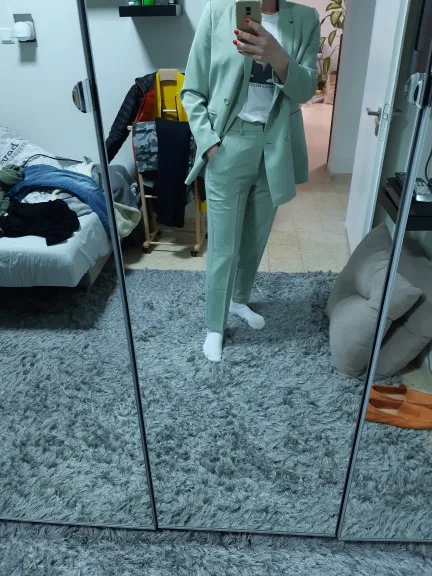 Please note, you are buying separate pieces of the suit. Every item added to the cart is a different part of the suit. It would be either the top or the bottom.Pants are just space! Suit fabric, very beautiful shade... On the parameters waist 74, hips 96 cm-perfectly fit the size L. On the height of 163 cm, the length of the trousers is full. The suit is so like that after I lost weight I ordered it a second time in a smaller size. Delivery in postomat in 2 weeks. This is my favorite store!!! Quality things at an excellent price, a huge choice. Thank you so much!!!