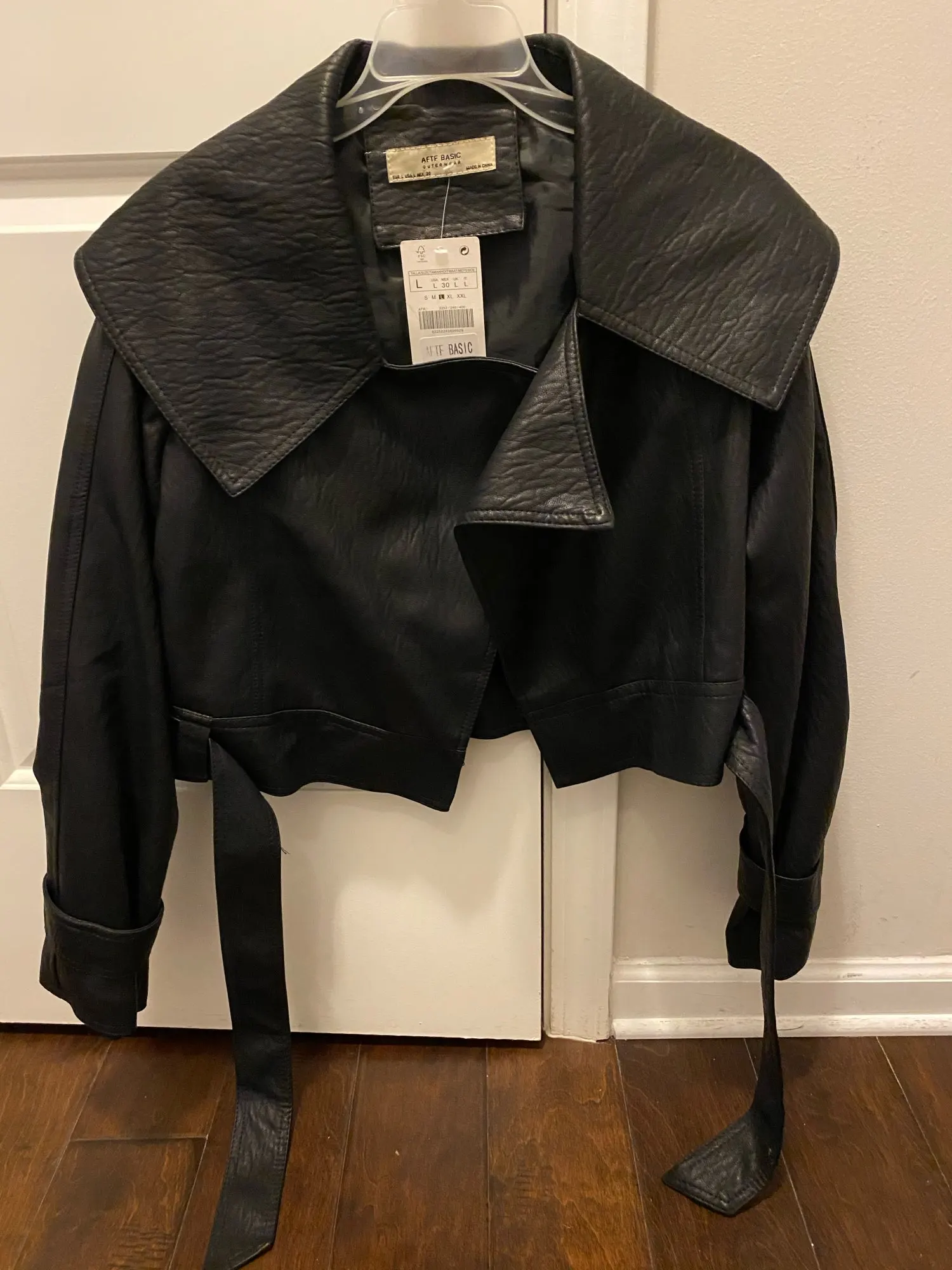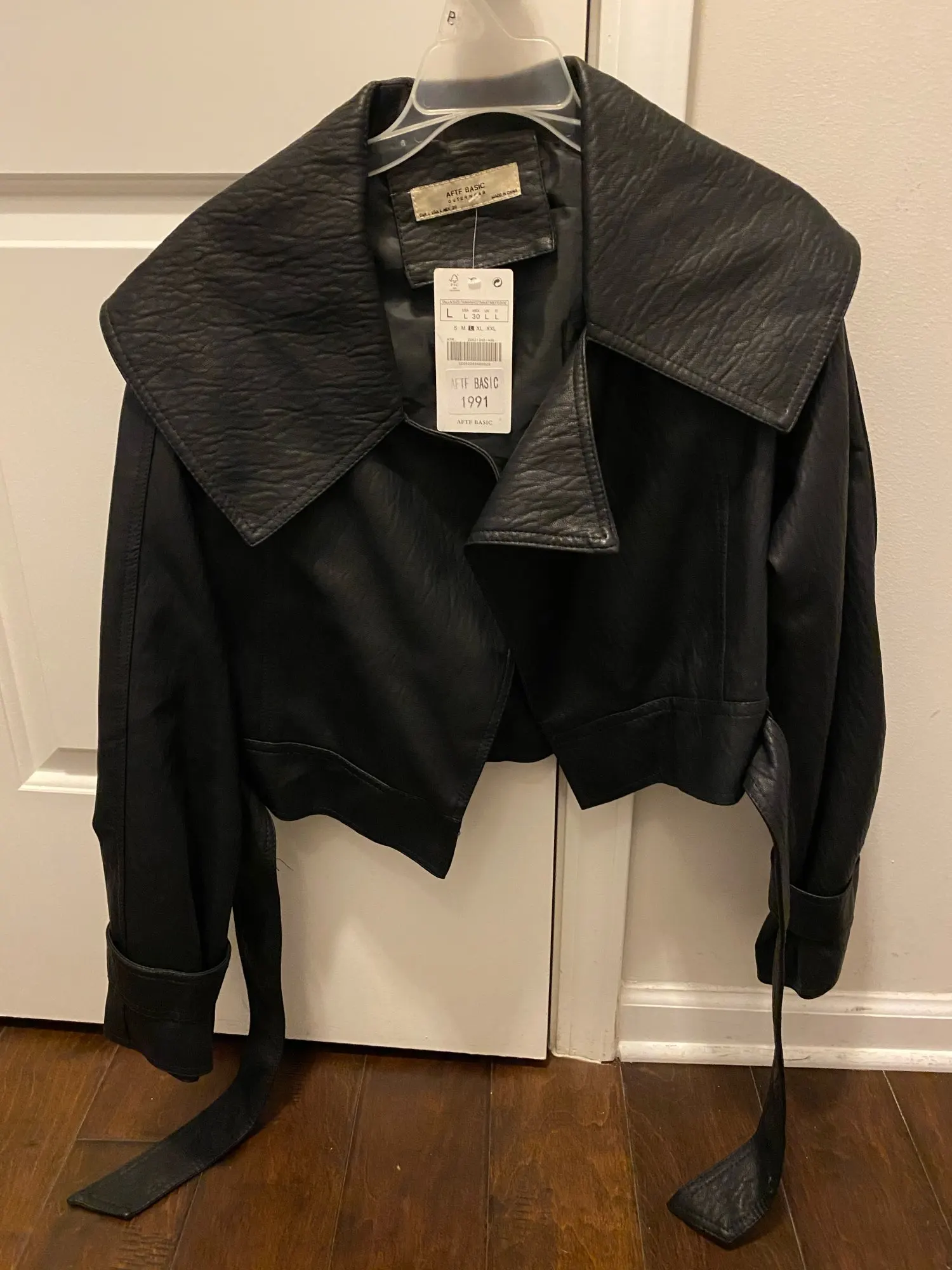 Women's Hot PU Leather Turndown Collar Lace-up Belt Short Designer Jacket for Autumn