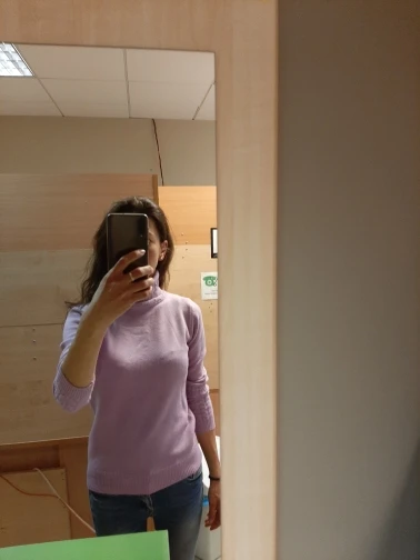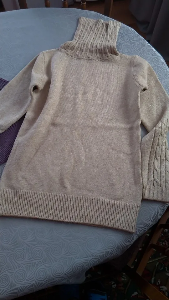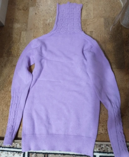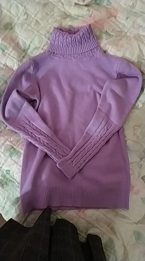 Nice sweater. Warm, soft. The color is beautiful. Recommend