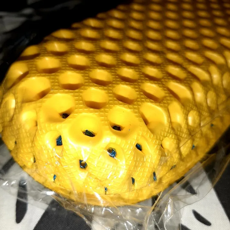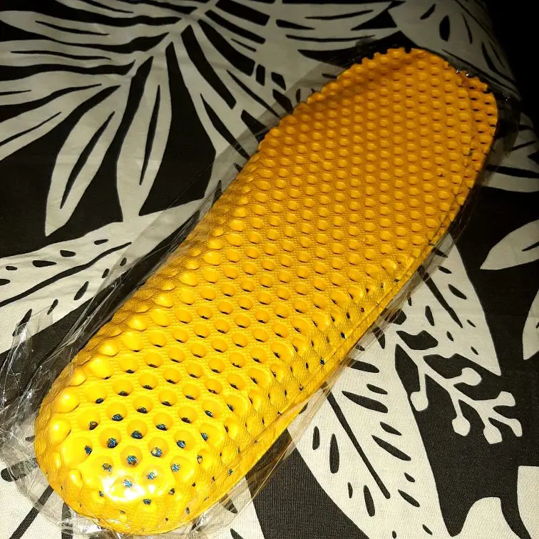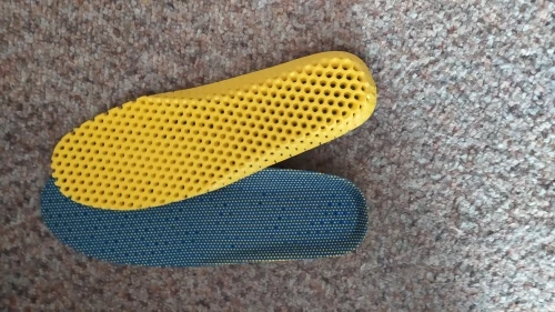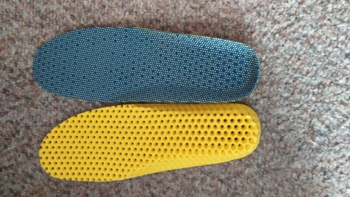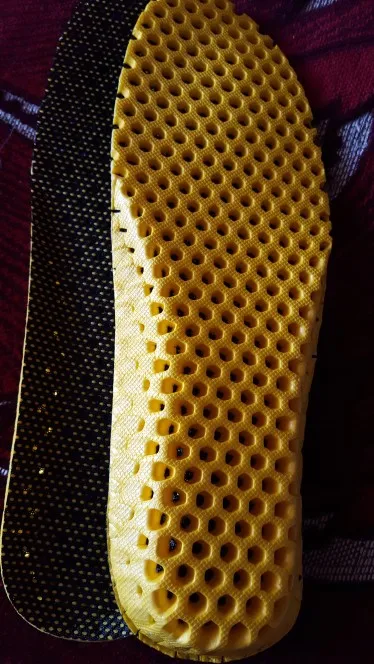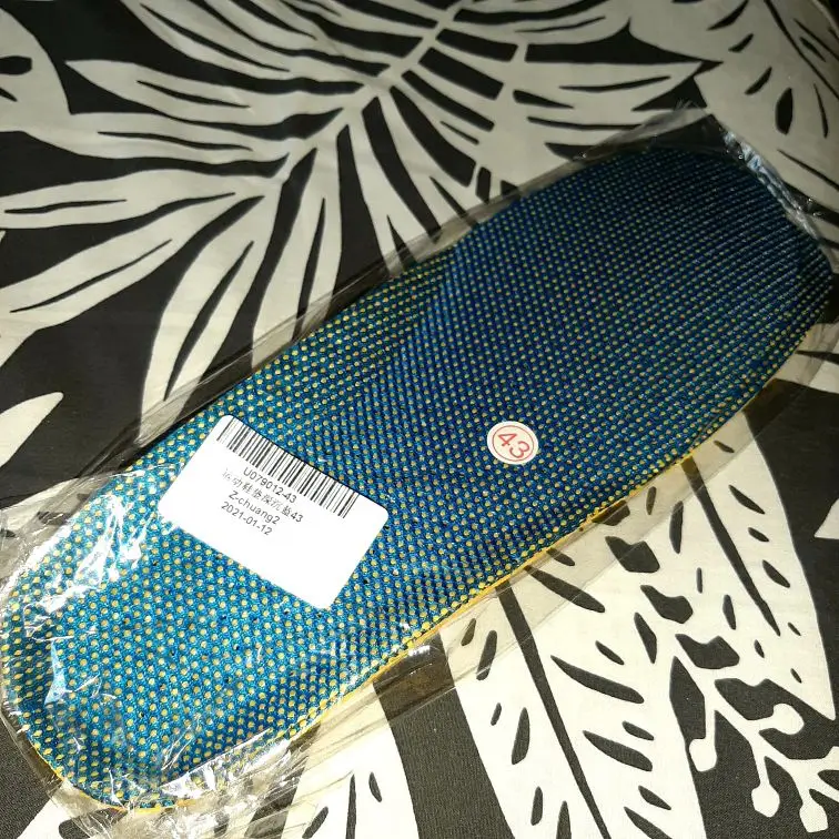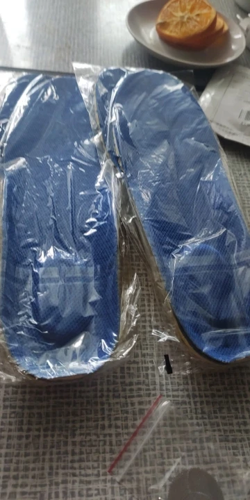 Excellent insoles. Came as part of the national parcel. And not disappointed at all. Pretty tight material. Perforation. The lower side is yellow, the upper (working) is dark blue. In sneakers of the 42nd Russian size perfectly lay down insoles 43. In the process of socks I will add feedback. The track was shot all the way and throughout Russia. Delivery Without delays 20 days to the Irkutsk region. The best recommendations to the store, the goods and the method of delivery.