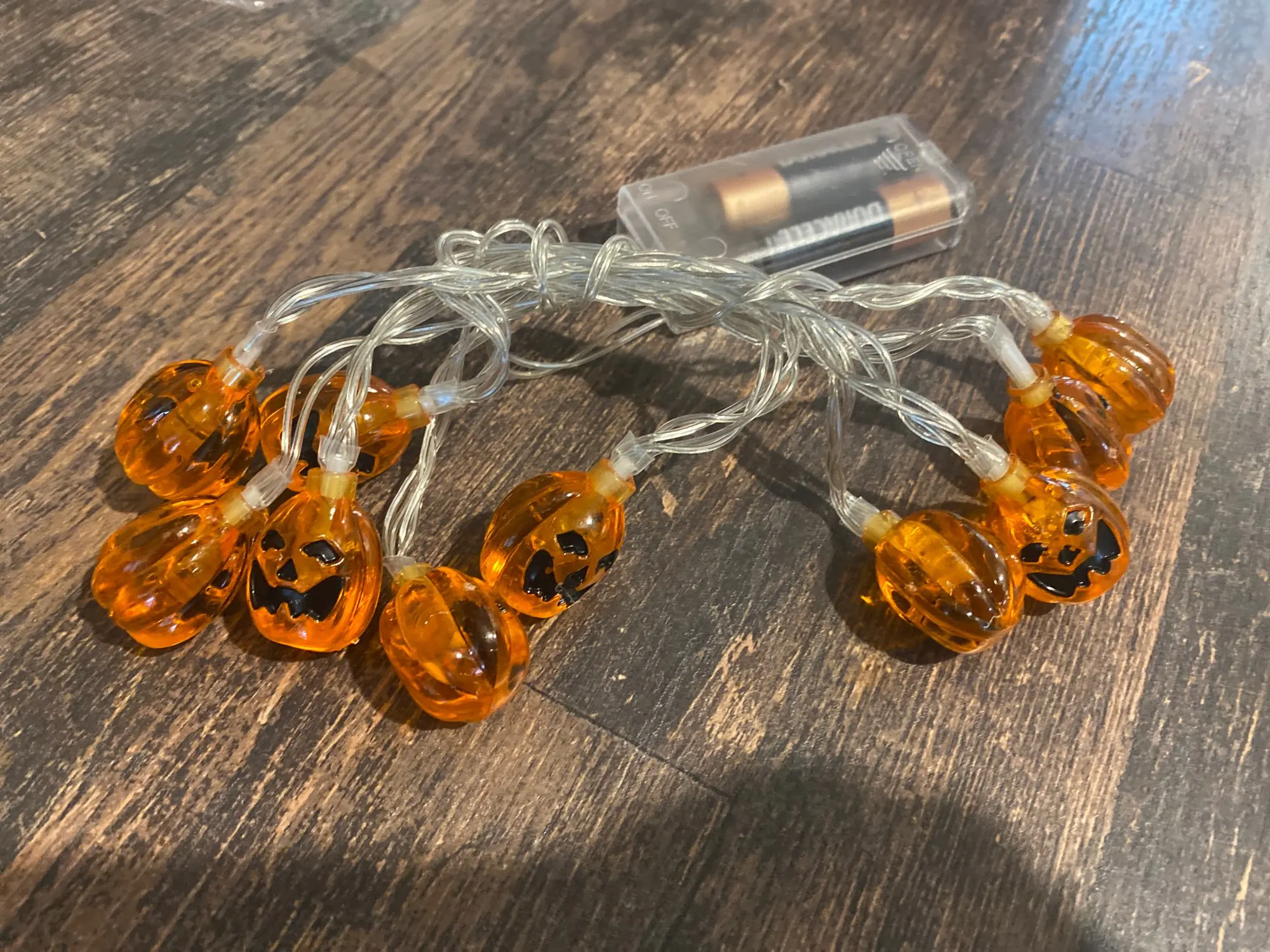 Length:1.5m LED Quantity: 10LEDs Material: Plastic Voltage: 3V Lifetime: 50000(H) Power By: 2 x AA batteries(Not included) Switch: ON / OFF Emitted Color: White/Warm White/Multicolor Application: Halloween, Bar, Party, Home, Hotel, KTV, Shopwindow, Courtyard...Feature: 1. 100% brand new quality light string. 2. The light is battery powered (not included), it can conserve energy and protect the environment. 3. The light is flexible, portable and easy to store. You can make it into any shape based on your need. 4. Pure light, high brightness, but the light is cold, not generates heat, not easy to burn and rupture, it is safe. 5. Perfect for Halloween, home, bar, room, party and other celebrations, you can easily hang it on walls, windows, doors, floors, trees, grass, etc. Package Include: 1 * Halloween LED String Light