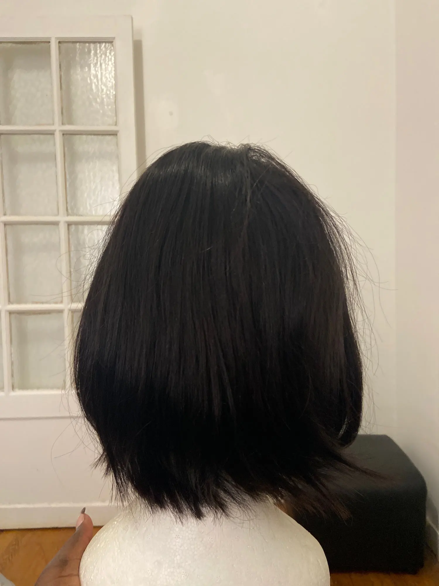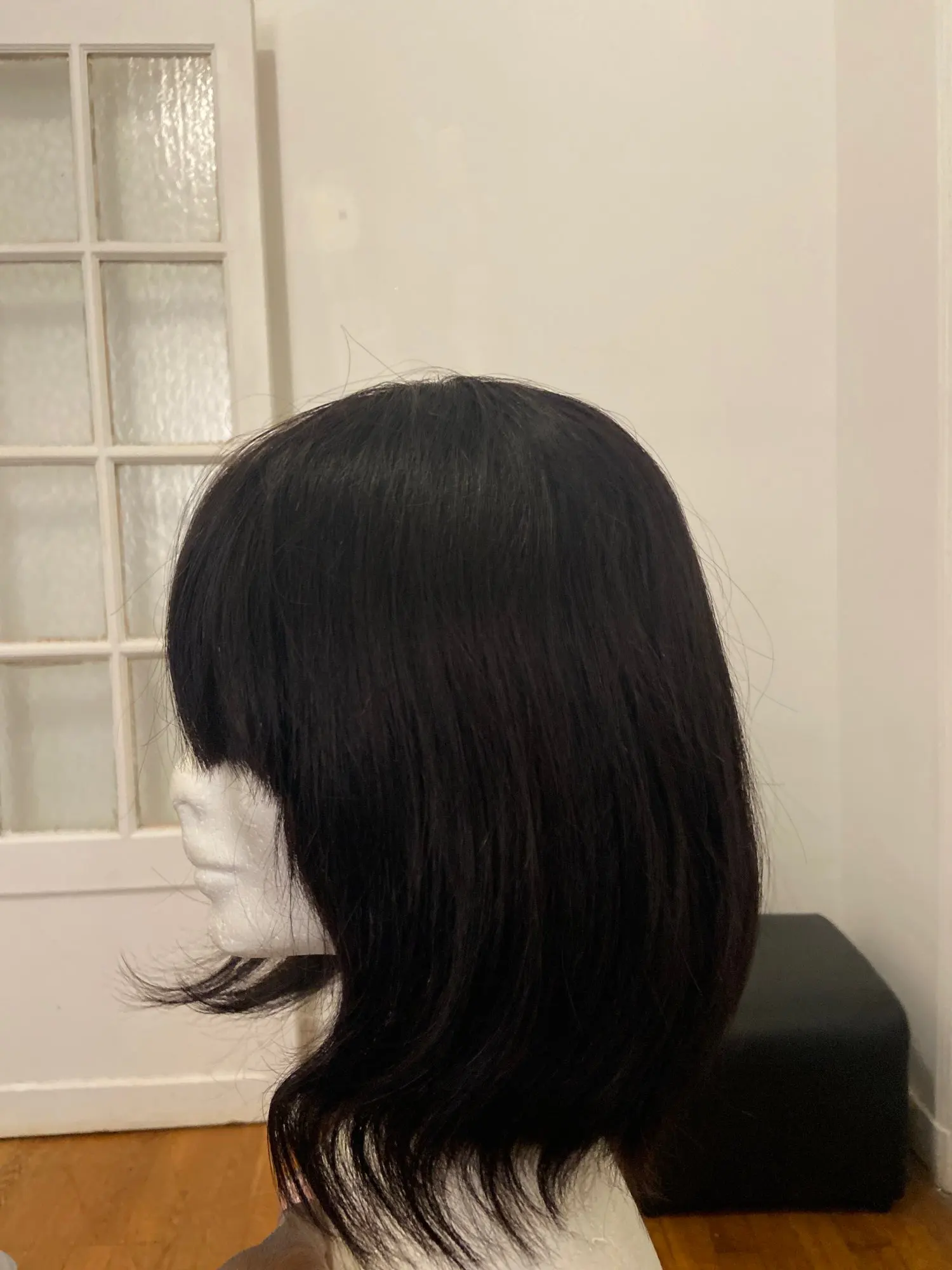 The length of straight hair wigs should be measured by the length from Head Spin to the longest hair at the Bottom.