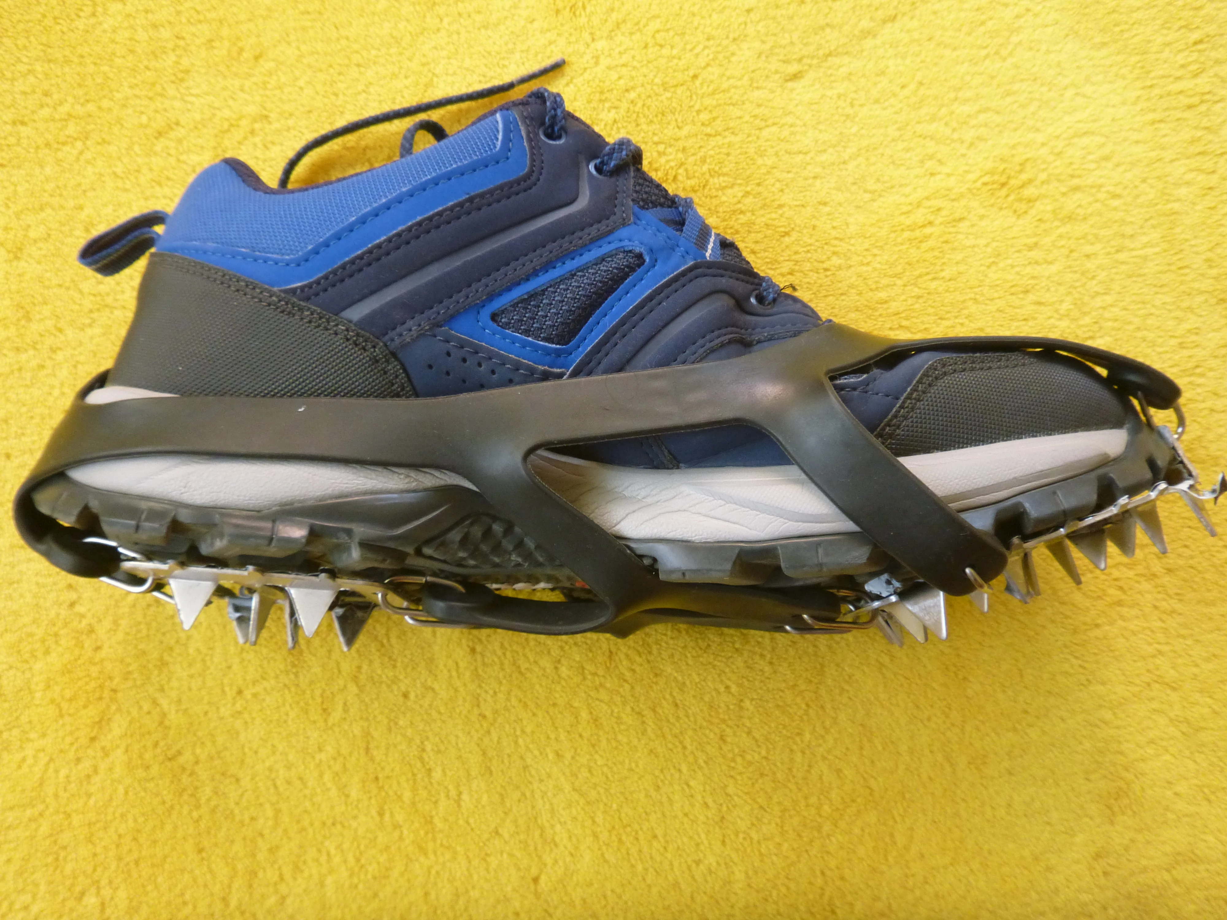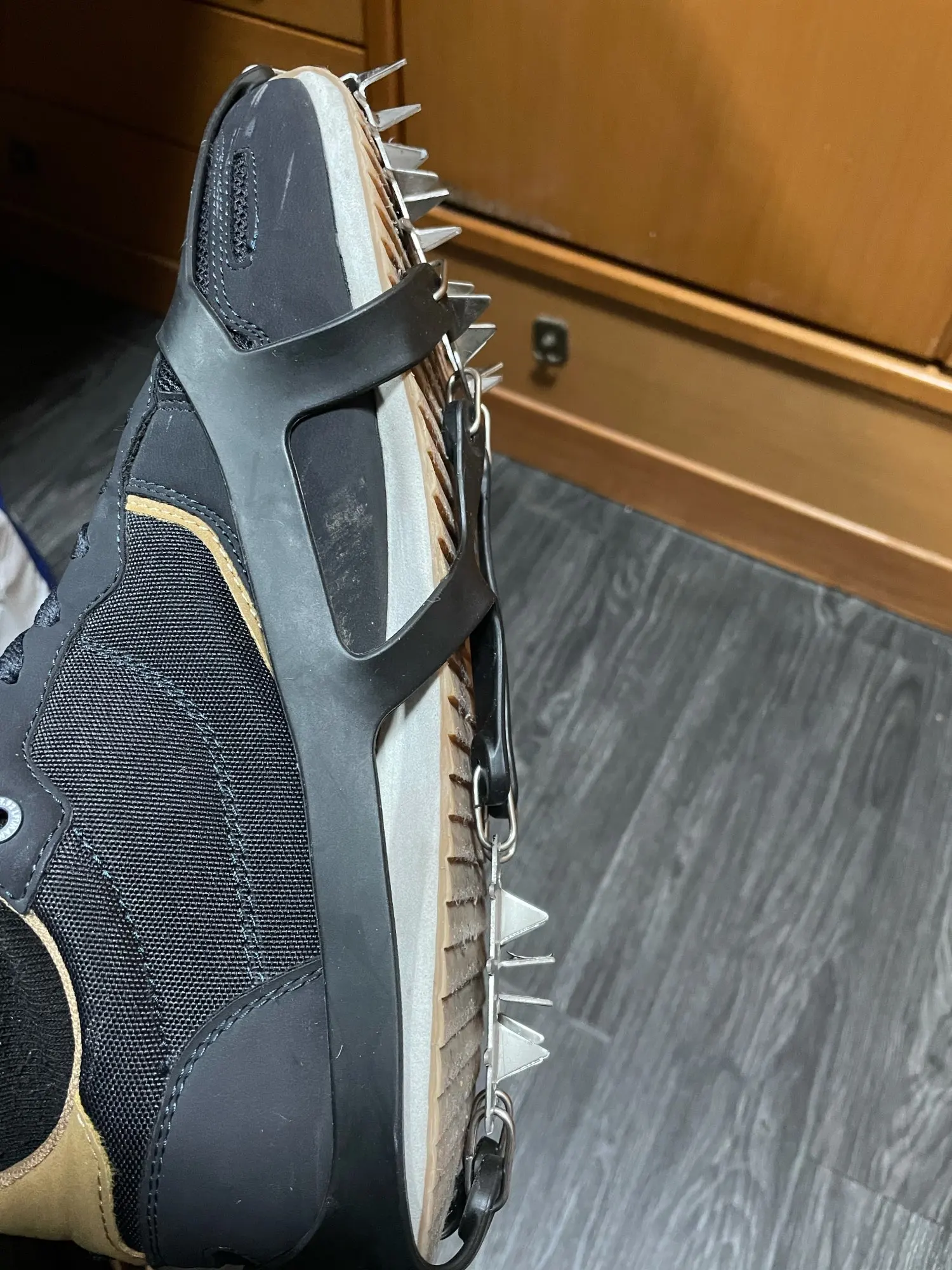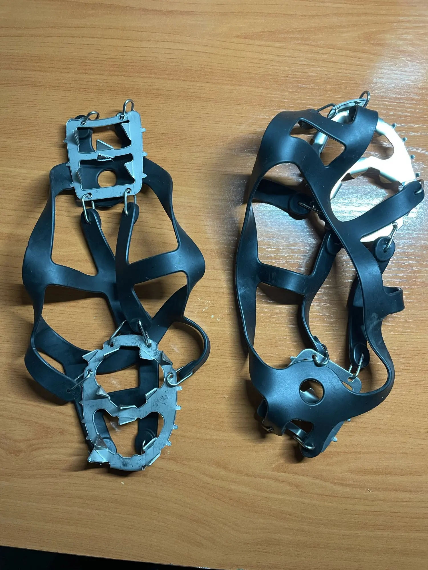 These 18 Teeth Climbing Crampons are for an outdoor winter walk. You can use them for Ice Fishing. These Snow Shoes are Antiskid. Features: With 18 high-strength steel teeth for aggressive traction, 6 tiny side steel teeth for non-slipping. Strategic placement of spikes ensures equal distribution of weight for long-lasting comfort and durability. A durable elastic harness ensures a tight hold on your shoe, even at cold temperatures. With fastener tape for you to wear more securely. Carry bag included for storing your crampons. Cooperate with all kinds of sports shoes, hiking shoes, and mountain boots, etc. Specifications: Material: Manganese steel & Silica Fit shoe size: Orange Size EU 36-40 / US 6-9, Black Size EU 41-46 / US 7-12 Color: Orange / Grey (optional) Item weight: 300g / 15.2oz Package List: 1 * Pair of Crampons 1 * Carry Bag