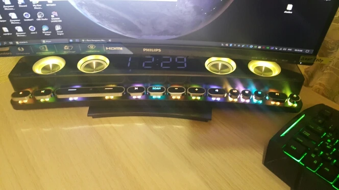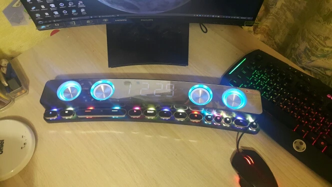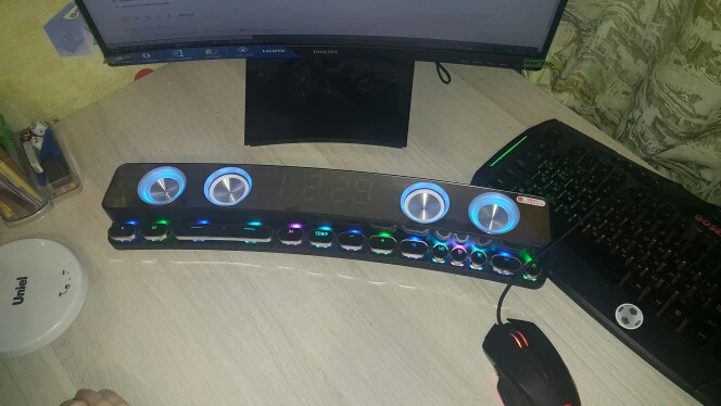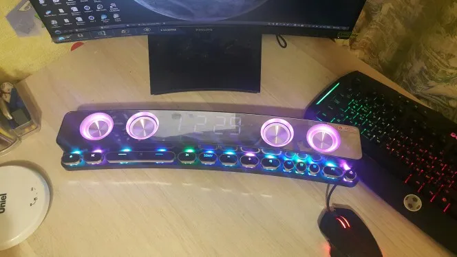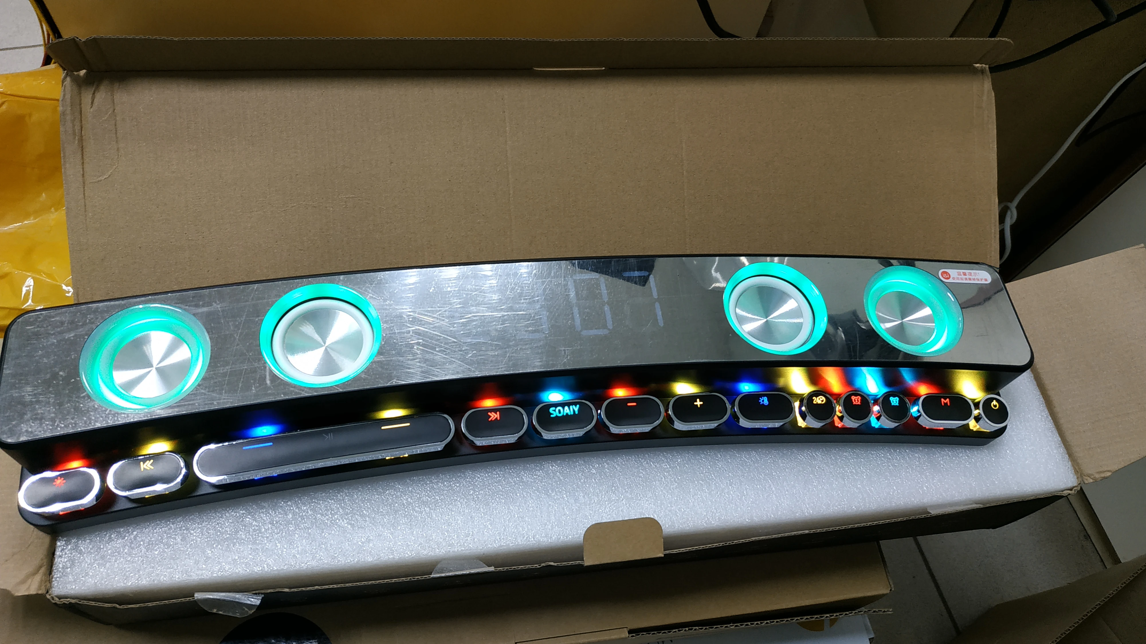 Specification: Audio input: AUX, USB, TF card, Bluetooth, FM play, PC mode Battery capacity: 3600mah (Clock version and Game version) USB/TF: support 32 GB Bluetooth version: 5.0 Size: 495 * 88 * 57mm