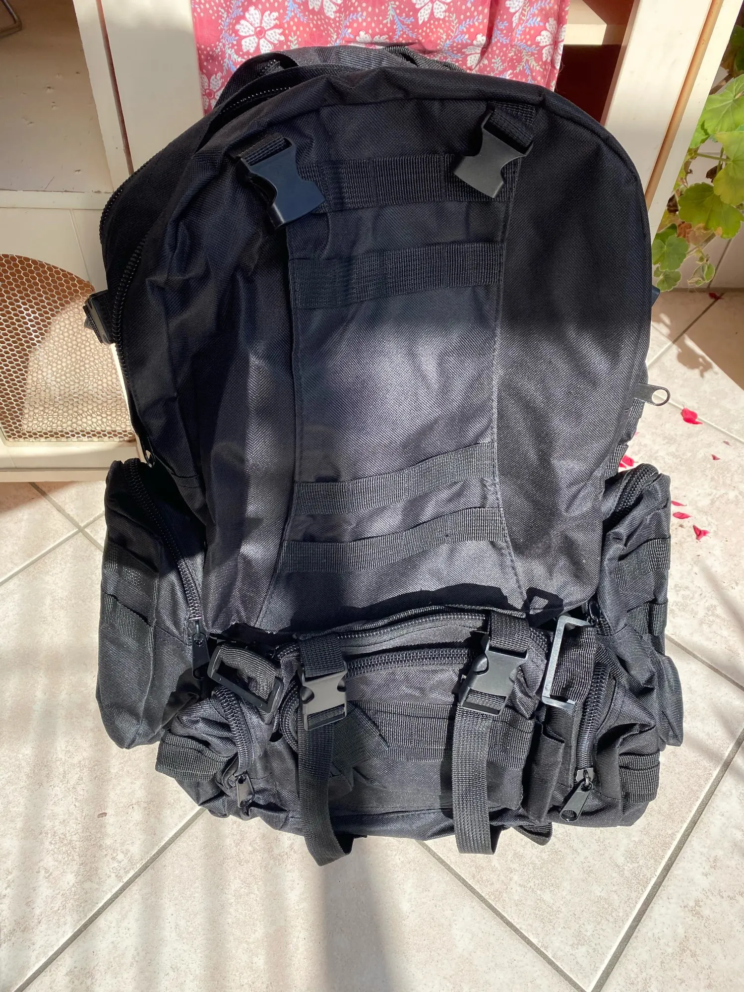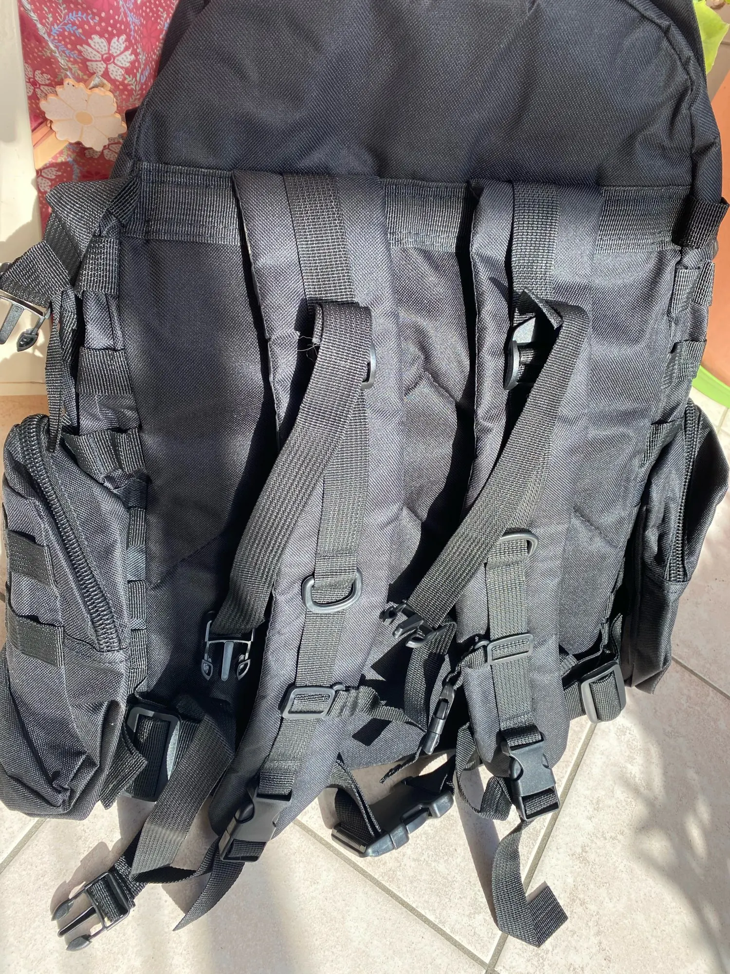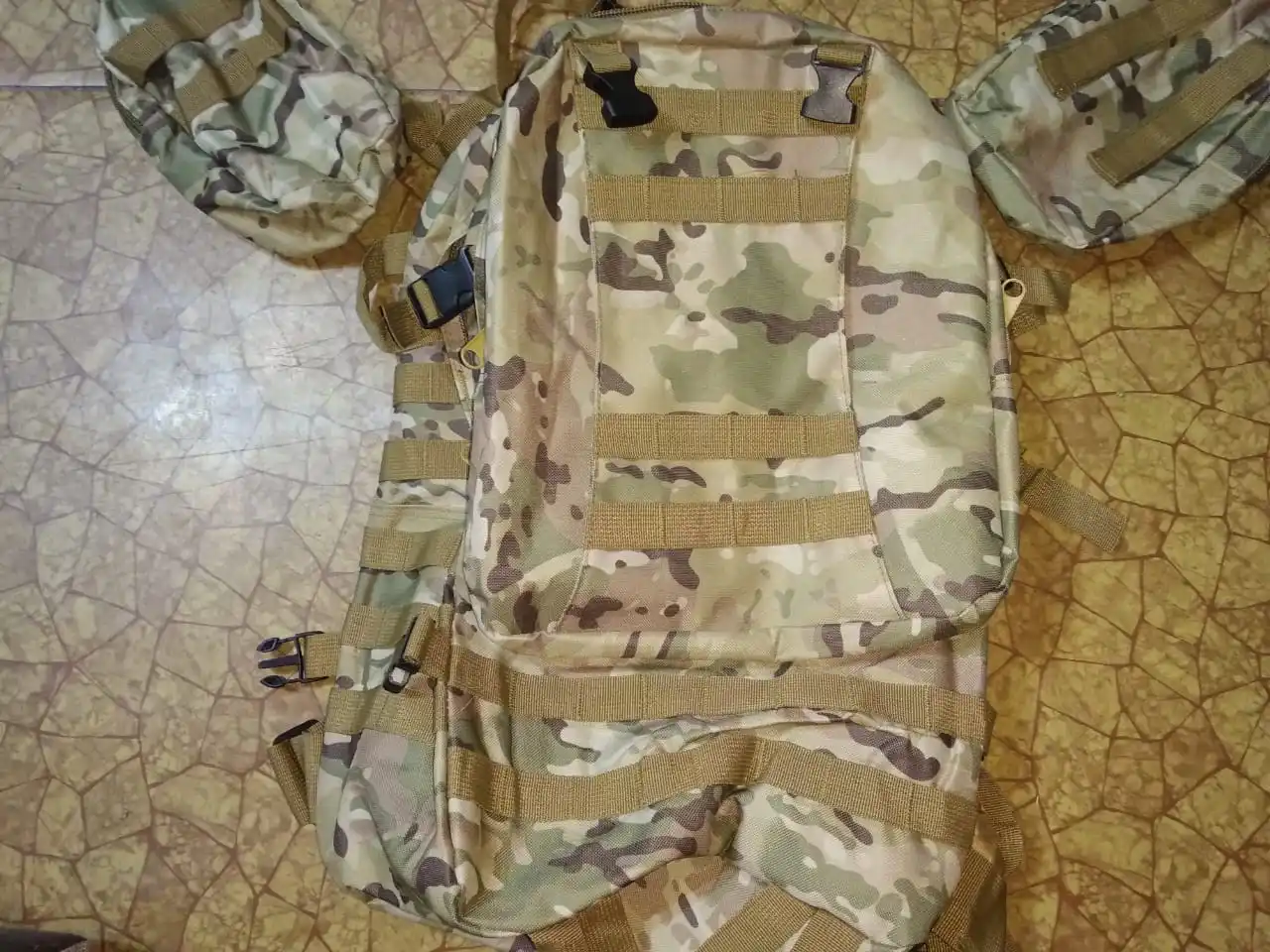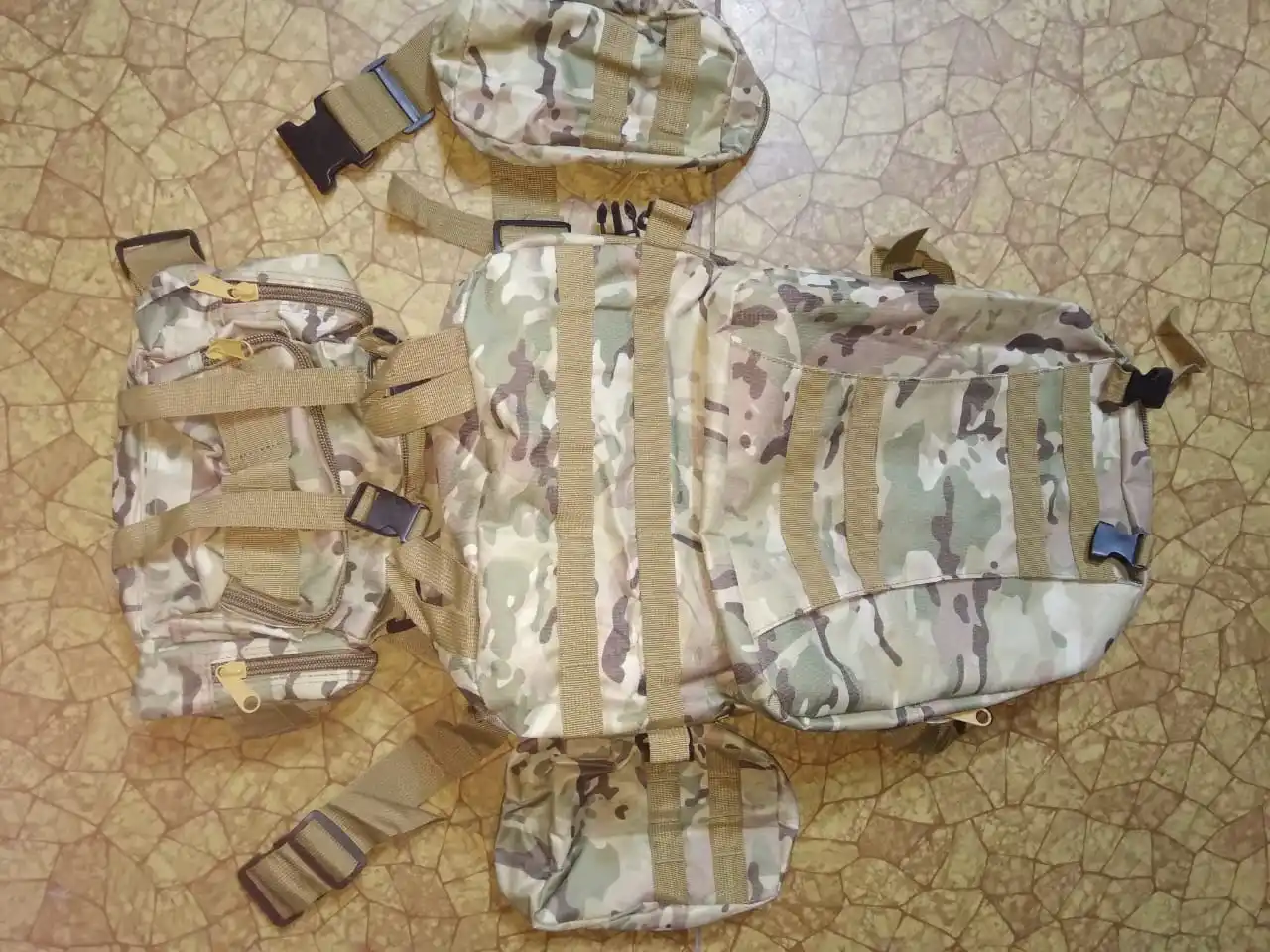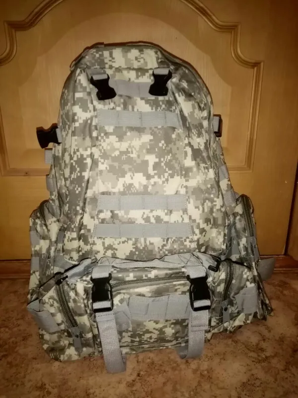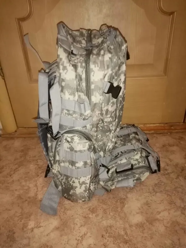 1. 50L Large capacity, With 3 detachable molle pouches attached on front and two sides. 4 bags can be Separated, convenient and portable; 2. Professional design pocket for water bag can place the different size of water bag; 3. Fully Adjustable Strap and waistband. 4. Wide & thick waist belt, comfortable for heavy carry. 5. Made of 600D Nylon, it is wear-resistant, durable. Note: due to different measurements please allow 1-3cm error. Due to the different displays, there is a slight colour difference.