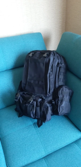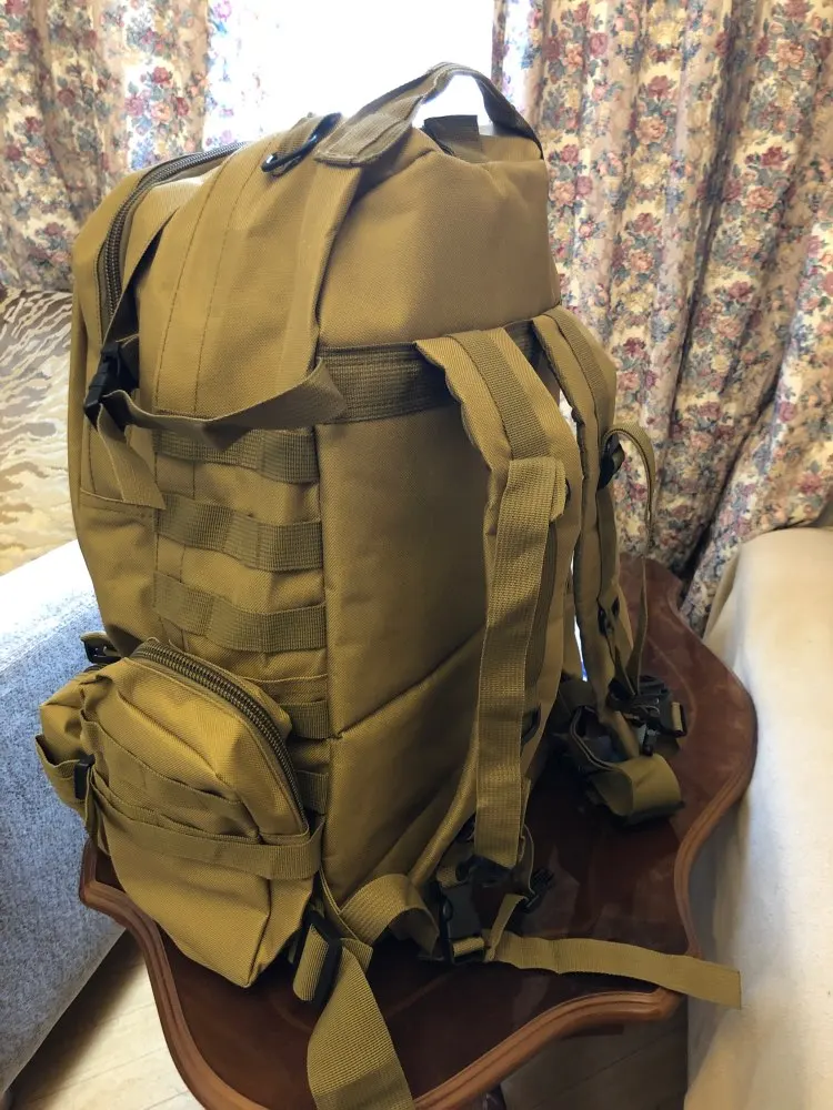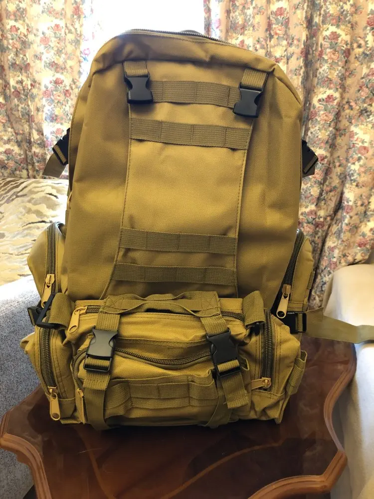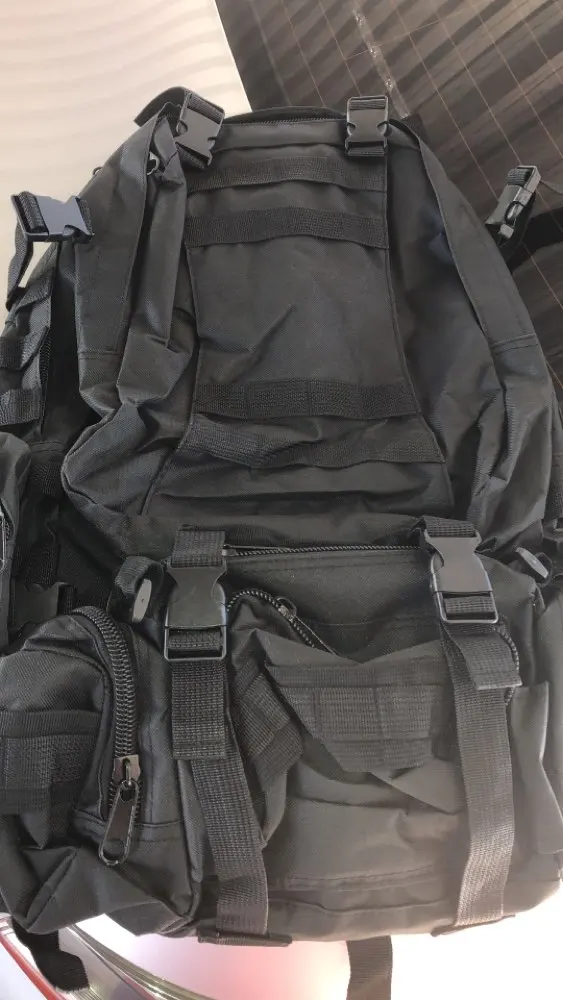 1. 50L Large capacity, With 3 detachable molle pouches attached on front and two sides. 4 bags can be Separated, convenient and portable; 2. Professional design pocket for water bag can place the different size of water bag; 3. Fully Adjustable Strap and waistband. 4. Wide & thick waist belt, comfortable for heavy carry. 5. Made of 600D Nylon, it is wear-resistant, durable. Note: due to different measurements please allow 1-3cm error. Due to the different displays, there is a slight colour difference.