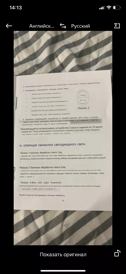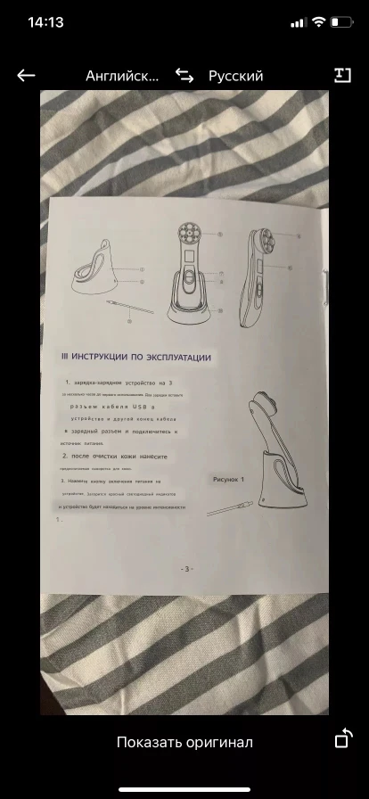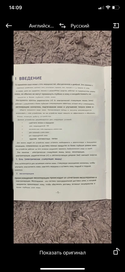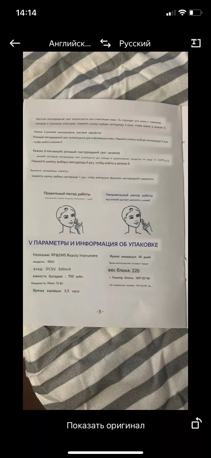 The device is cheaper than one procedure in the cabin. Everything works. Now I'll put the instruction on Russian. In the kit it is without translation. Then I'll add the feedback to the photos before-after and write with what I used.