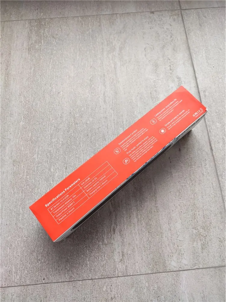 1. Bluetooth Version: V5.0 2. Transmission Distance:33 feet range 3. Frequency Response Range:85hz~20KHz 4. sigani-to-noise ratio:84db or higher 5.Sensitivity:80db+2db 6.Size:190mm*55mm*60m