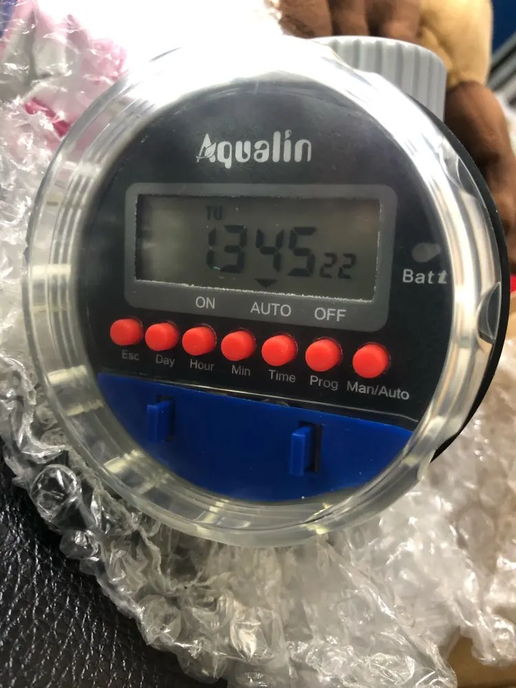 Automatic Electronic Garden Water Timer with LCD Display Item Type: Garden Supplies Material: Plastic Working Temperature: 5 - 60 C (40 - 140 F) Water Pressure: 0 - 8 bar (0 - 116 PSI) Size: 9 x 9 x 16.5 cm Weight: 280 g Features: Garden, Garden Supplies, Watering, Irrigation, Garden Water Timers Product Description: >This timer allows you to set it and it will do the watering for you. >Please close the top lid very tight, to make sure water can not go inside Features: > UseLR032XAAA 1.5V Alkaline battery (not included) > Durable high impact construction > Clock time display >8 different Programs ready to be set > Simple, reliable, water-proof > Working pressure: 0 to 8 bar(0-116 PSI) >Working temperature:5-60C(40-140F) > Can be attached to3/4''(19mm)tap or faucet > Manual Watering: can be set for one time instant manual watering > Manual ON, Manual Off, Auto mode > Frequency can be set per day, or each day of a week, 15 different day choices https://ae-cn.alicdn.com/0efe2qM6P4YqWAN8QQd/Yk0oChObKhH9vRZIQ5m__hd.mp4