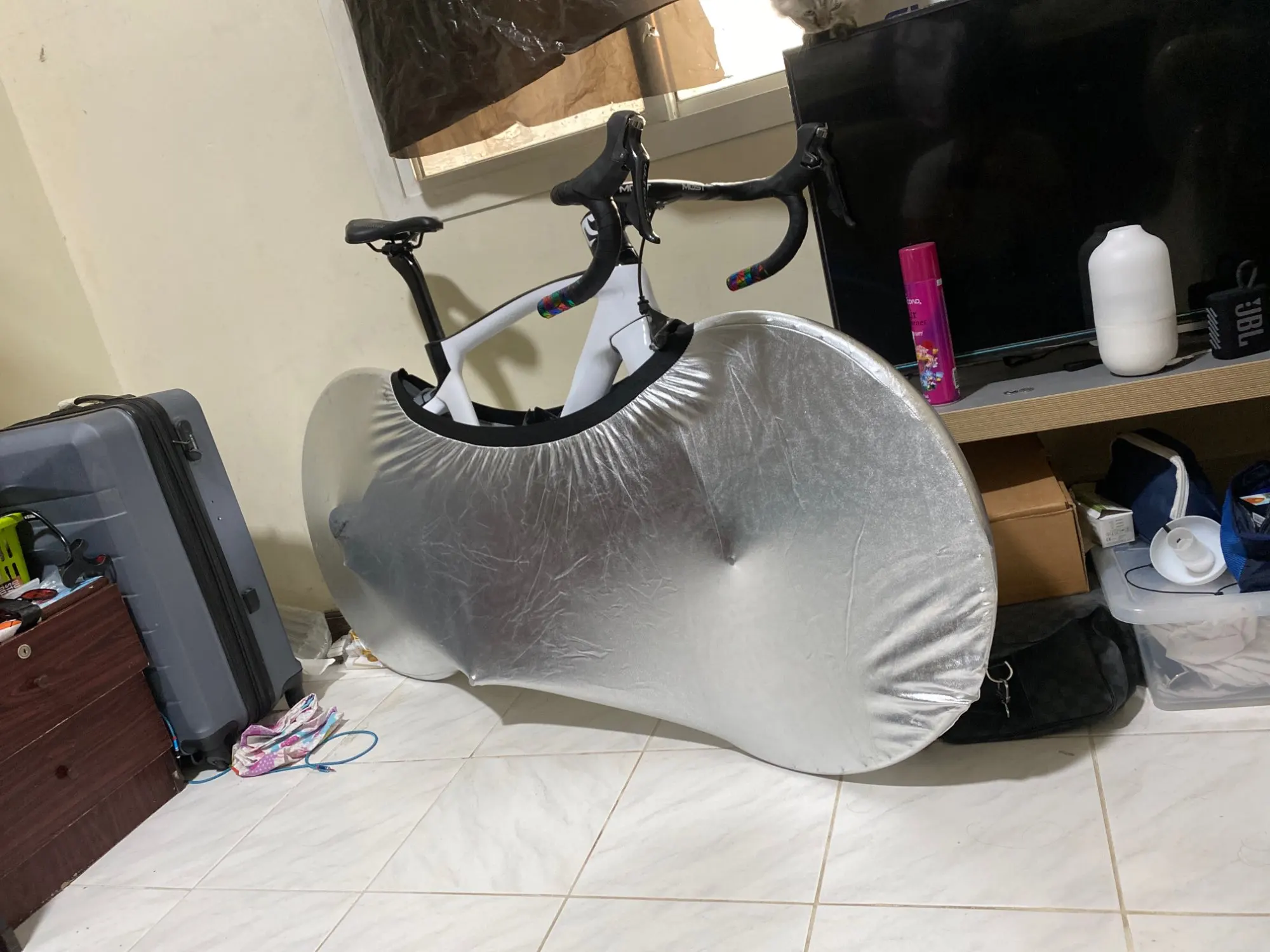 1.Easy to use, store and disassemble, perfect for indoors. 2.Prevent sand, mud and others from being brought into a room and walls from getting dirty by bicycle tires. 3.Bicycle cover for indoor floor and wall protection from getting dirty (apartment, home, office, car). 4. Suitable for mountain bike, road bike, folding bike, etc.