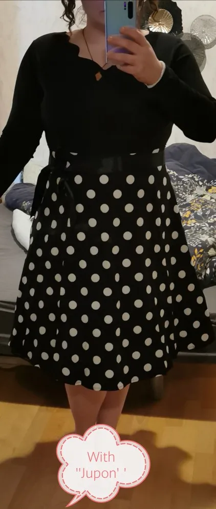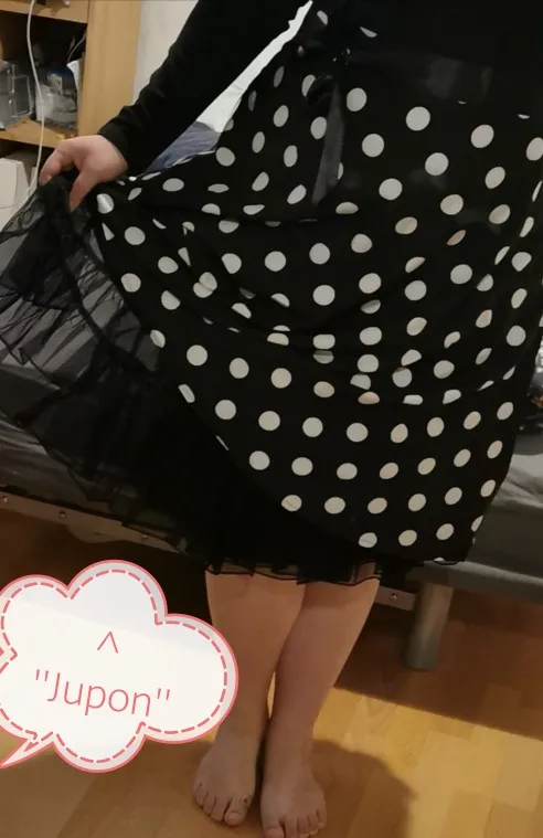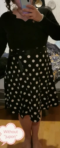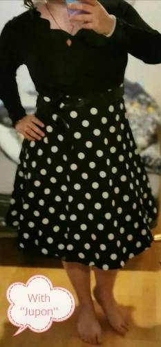 I'm in love with this dress! I tried it on with the little black '' jupon'', and I don' t like it as much as all natural without anything underneath it :) great effect, not thin fabric, not transparent, for the price I'm really, really thrilled. It fits perfectly (3XL),