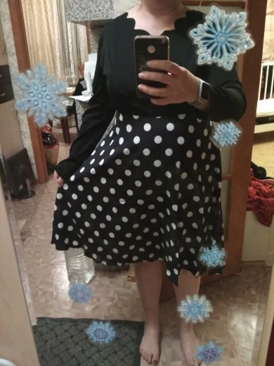 Delivered quickly. Sewing is neat, very gentle to the body, but you need to take it with a petticoat, if without him just lie on his feet, it will not be very... I was afraid with the size I do not please, all OK XL Just My Size is 54-56. New Year's mood from the dress at altitude