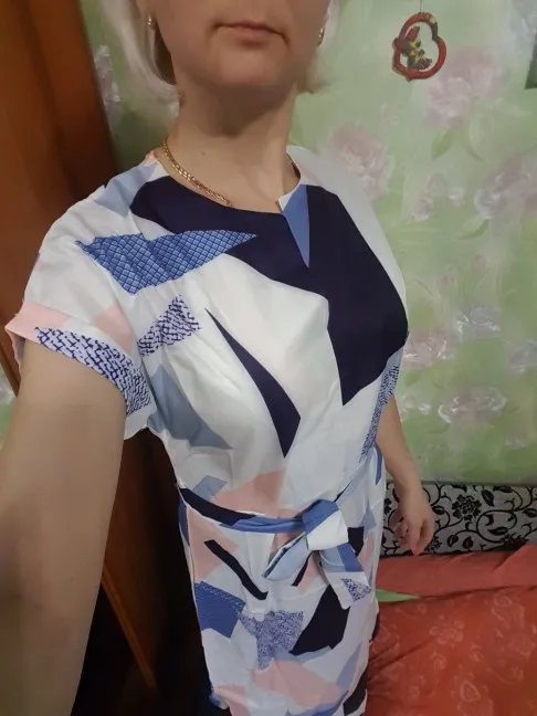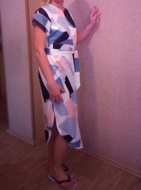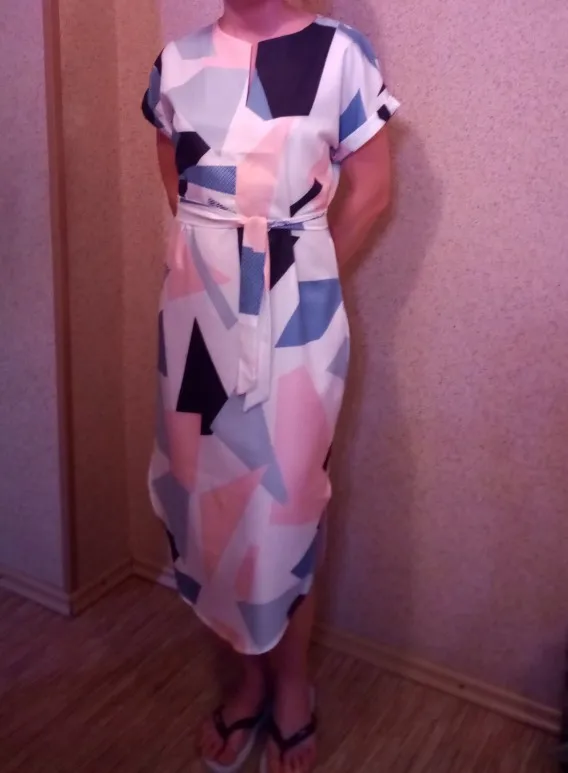 Very light dress, pleasant to the body. Beautiful colors. Threads do not stick out, stitched well. The track was tracked, it reached 3 weeks to Moscow.