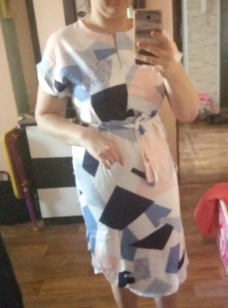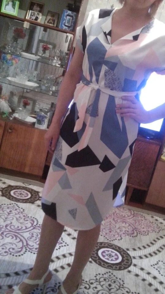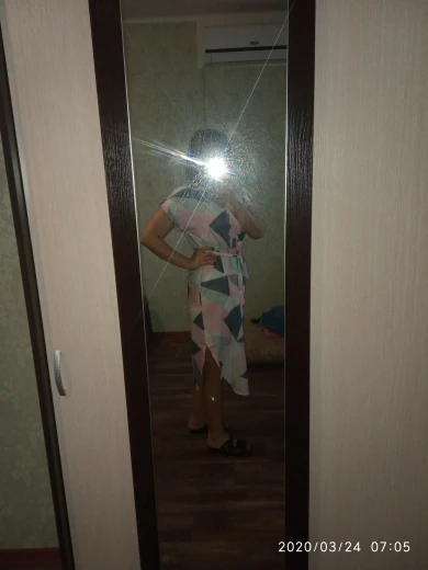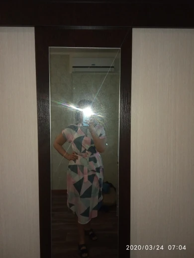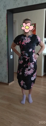 The delivery was very long for a well-known reason, but the dress still came. took on the size grid XL. My height is 175, weight 75, shoulders 43, OG 104, OT 92, ob104. The dress came perfectly, the length is below the knee, the coloring is exactly as in the picture. The only thing that did not like this seam at the waist is too high, I will take another wide belt. I advise you to take it, I did not regret it.