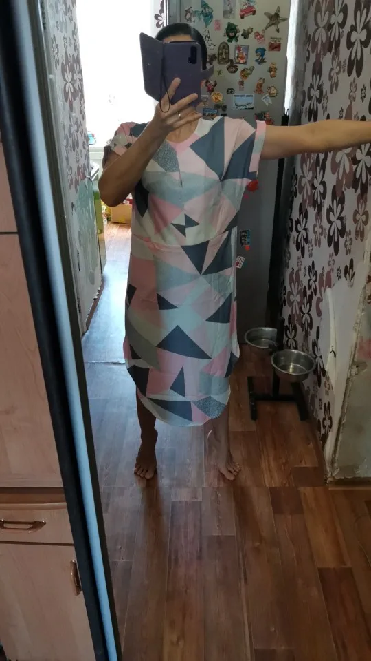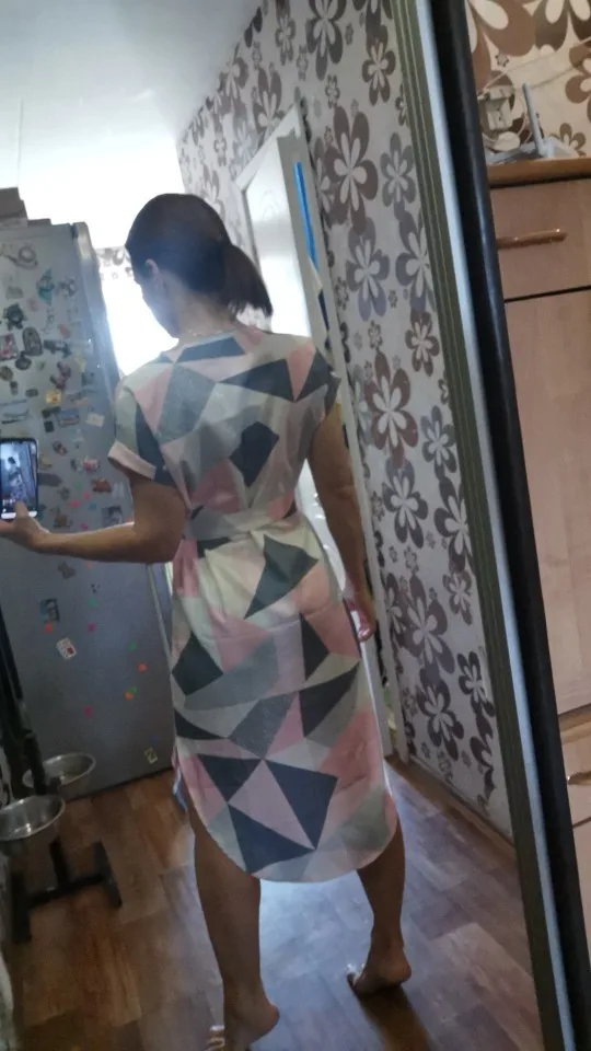 The dress was sent out the same day as ordered, received a month later in the mail. The description is completely the same. Fabric 100% polyester, pleasant to the body, slightly electrified, shines very slightly. The color and pattern fully matches the photo. My height is 160 cm, OG-ot-OB = 84-68-95. I wear the Russian 44 size, took M. My dress measured a girl 170 cm tall, wears the Russian size 44-46-on it generally the village is perfect, so order safely your size. Seller Thank you so much