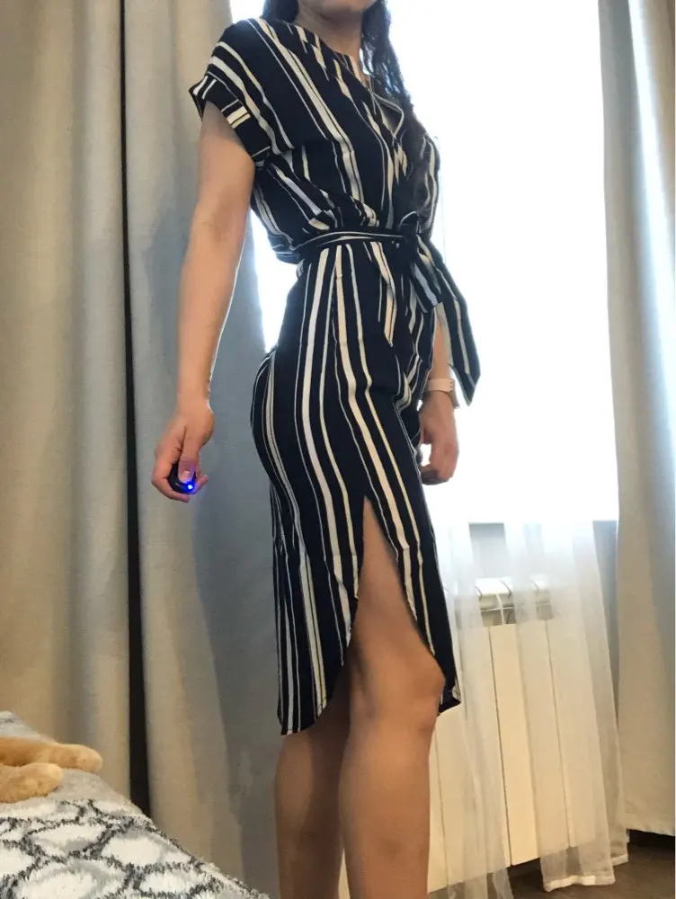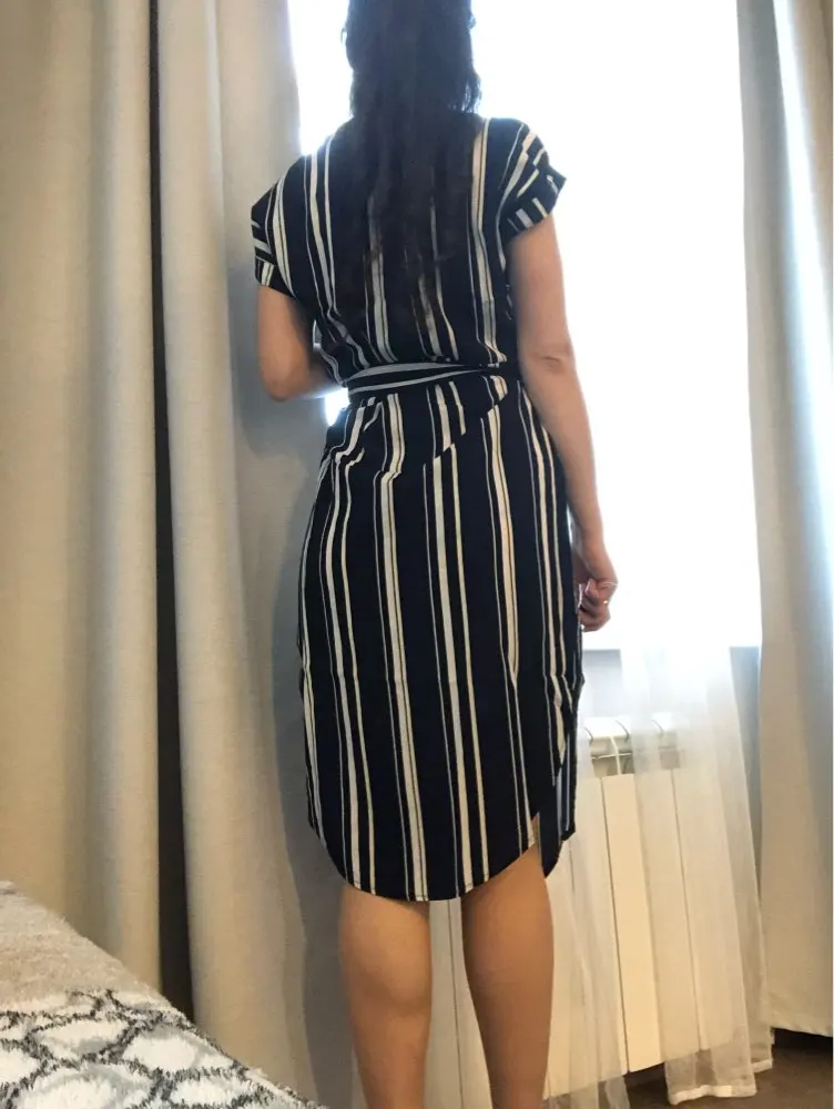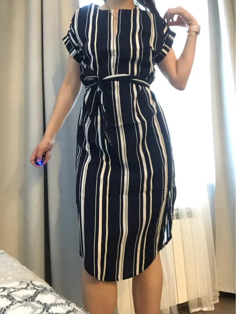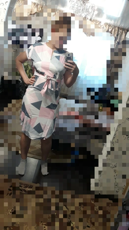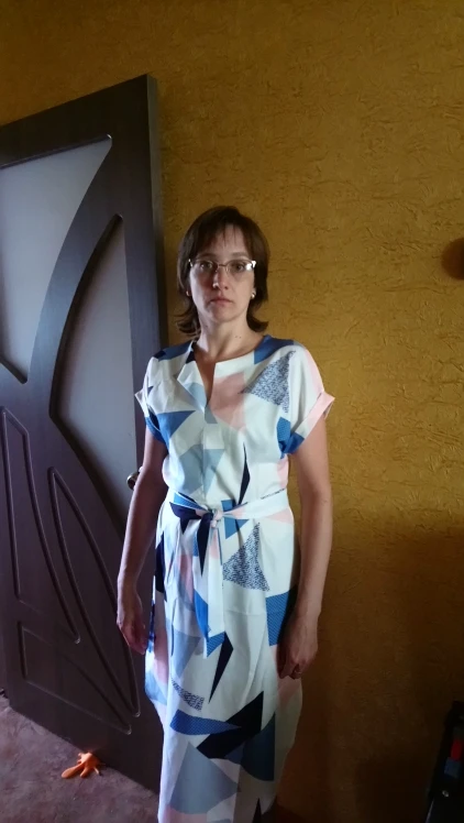 The fabric is very pleasant to the body, correspond to the dimensional grid presented by the store, on my height 175 it just below the knee nowhere does not tighten sits very well the fabric looks more like the material of the cold for the summer, that's it.