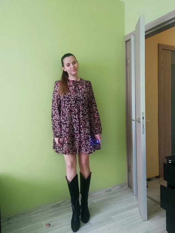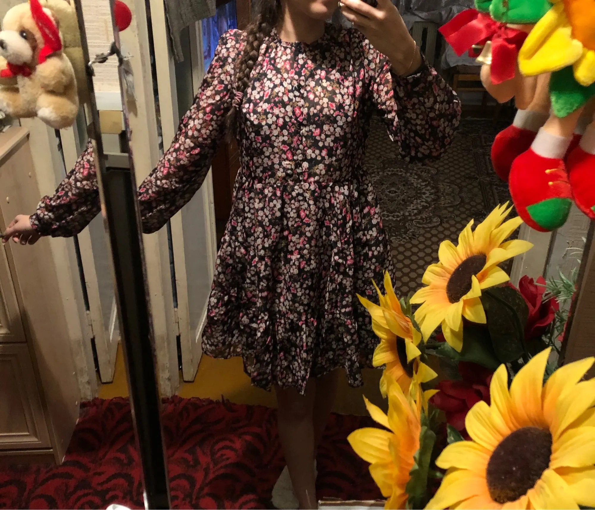Beautiful, spring, bright dress, quickly sent, delivery within 2 weeks, well packed, the size matches, here only there is not enough strap