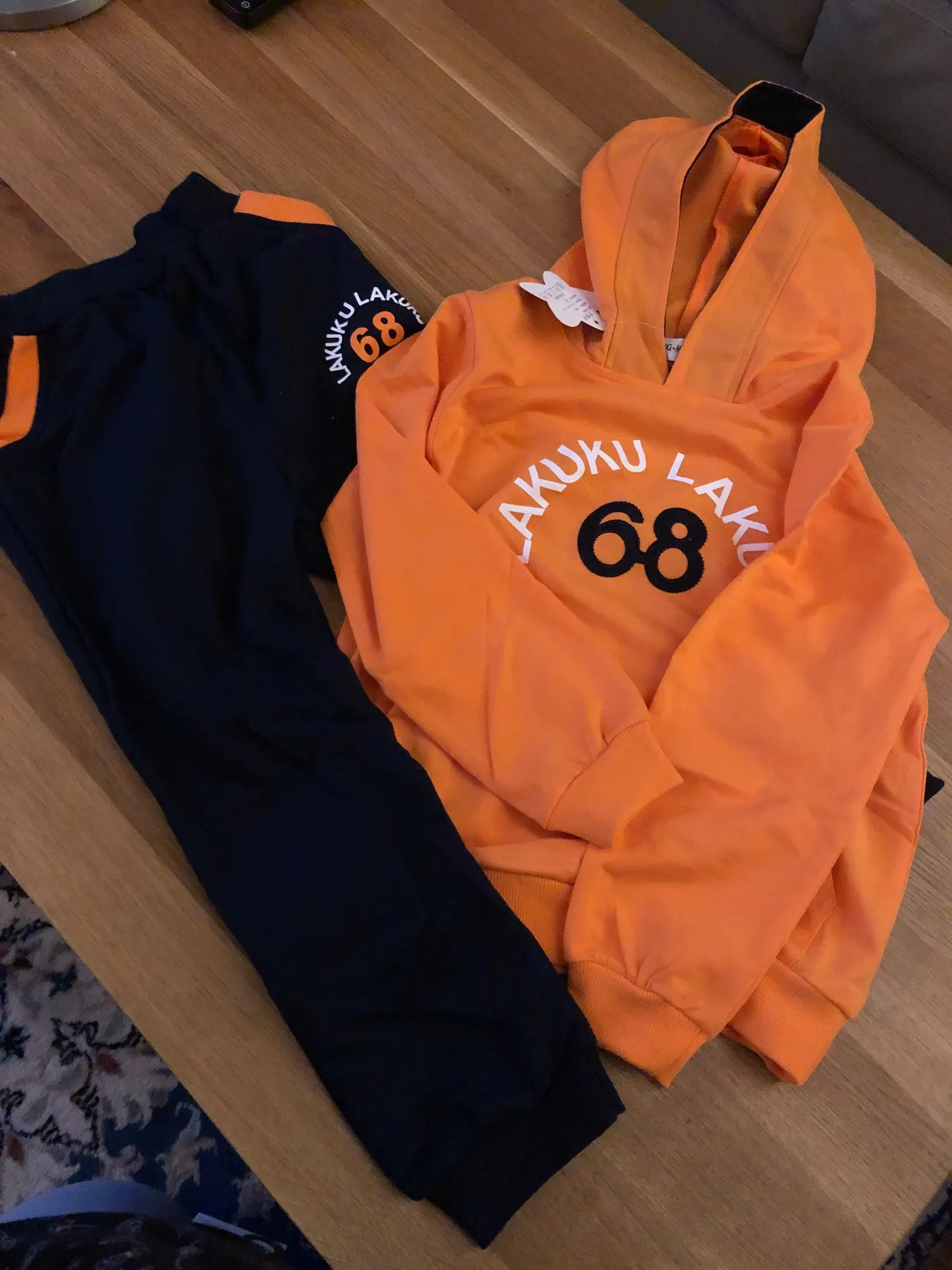 Boy's Wonderful Letter Print Pullover Hooded Tracksuit-Model
