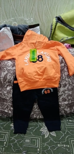 Boy's Wonderful Letter Print Pullover Hooded Tracksuit-Model Show 2