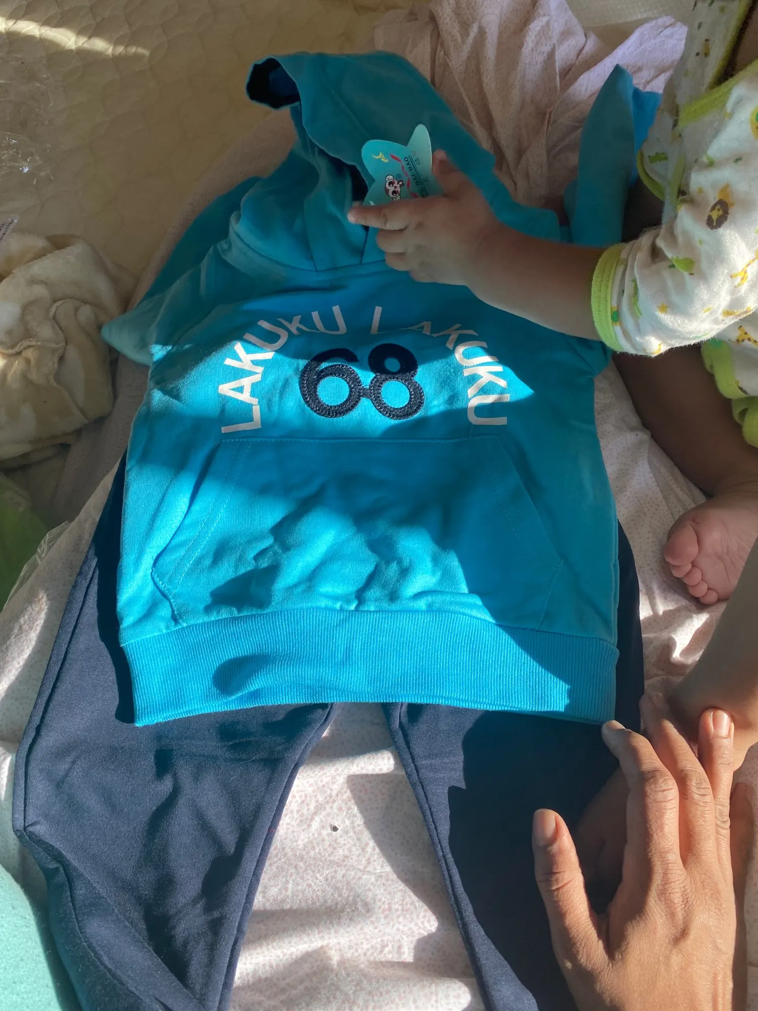 Boy's Wonderful Letter Print Pullover Hooded Tracksuit-Blue