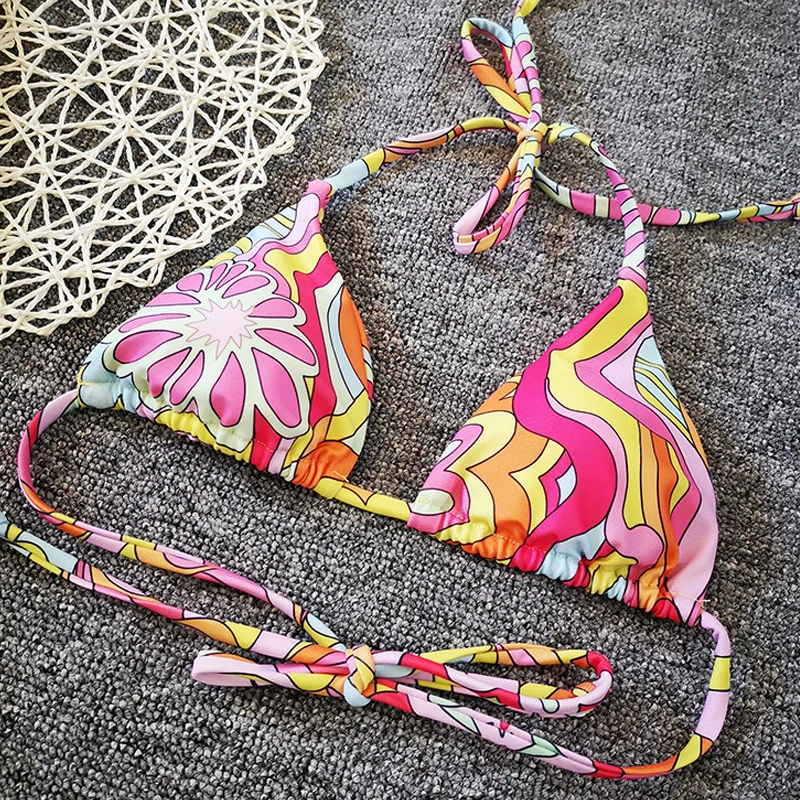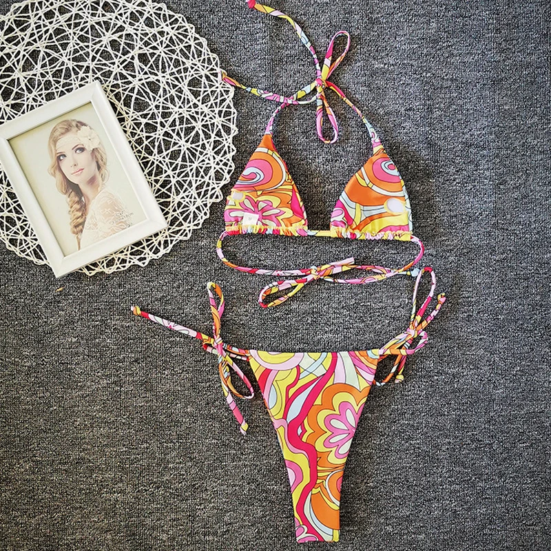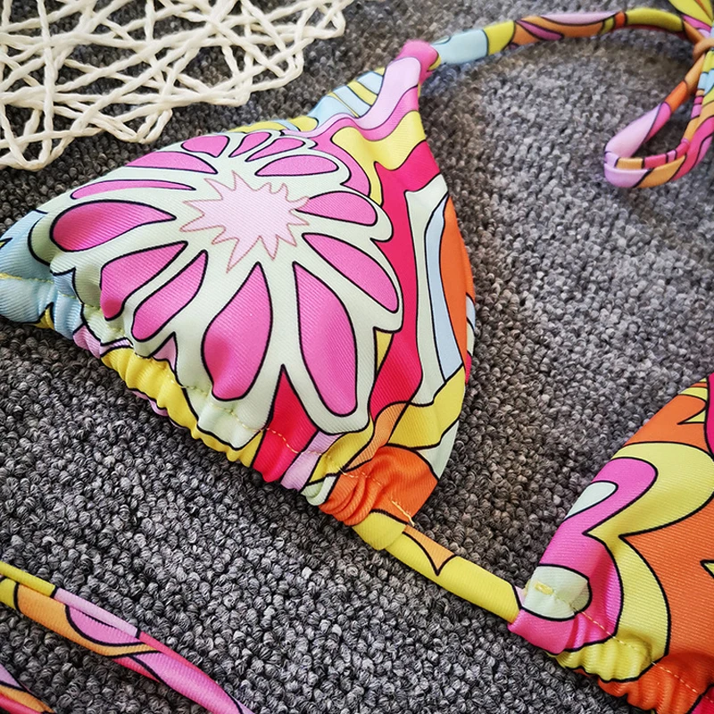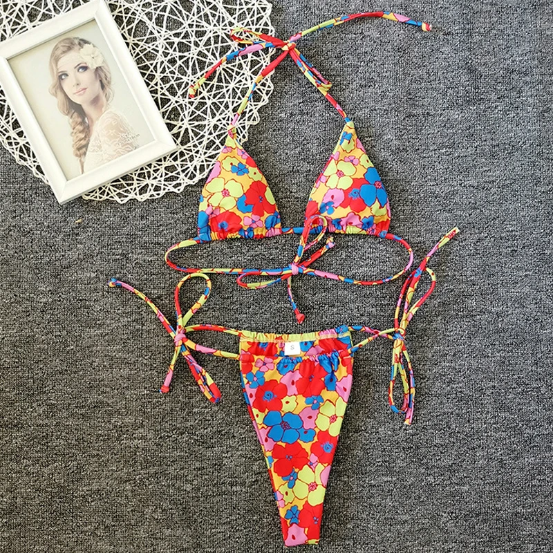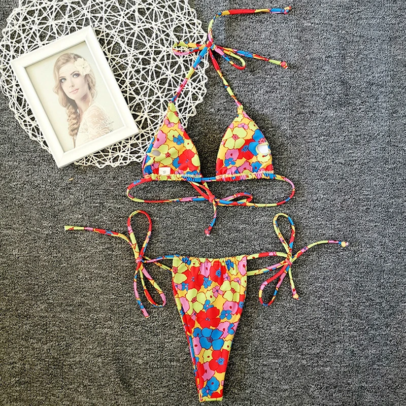 2021 Triangle micro bikini set Brazilian floral print swimsuit for women String high cut swimwear Sexy swimming Bathing suit Biquini